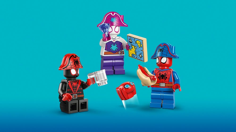 - 4 MINIFIGURKY – Připojte se ke Spideymu, Ghost-Spider, Milesovi „Spin“ Moralesovi, Zelenému goblinovi a Trace-E a užijte si spoustu zábavy na pirátské lodi, Pavoučím ostrově a dalších 2 malých člunech, které jsou součástí této akční stavebnice