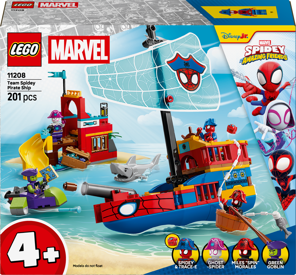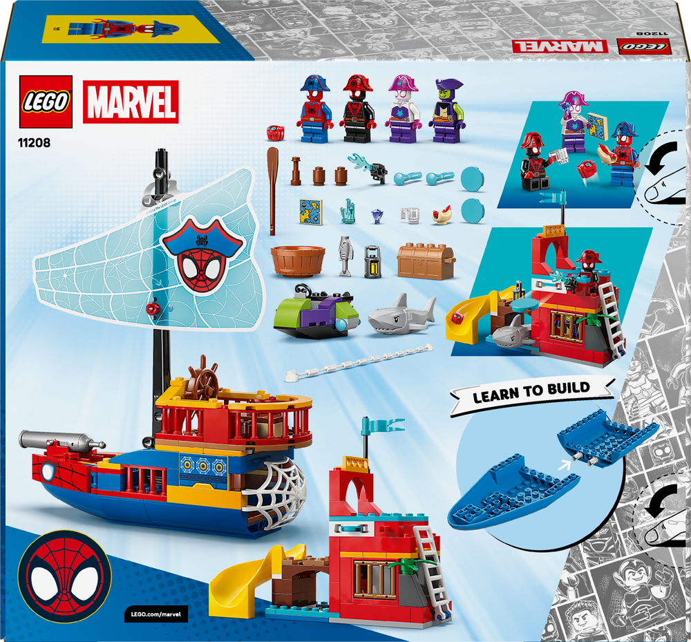 - SUPERHRDINSKÁ PIRÁTSKÁ LOĎ – Nastupte na palubu pavoučí lodě Webs Ahoy a zastavte Zeleného Goblina, který ukradl truhlu s pokladem v této dobrodružné stavebnici LEGO® ǀ Marvel Pirátská loď Spideyho týmu (11208) pro kluky a holky od 4 let