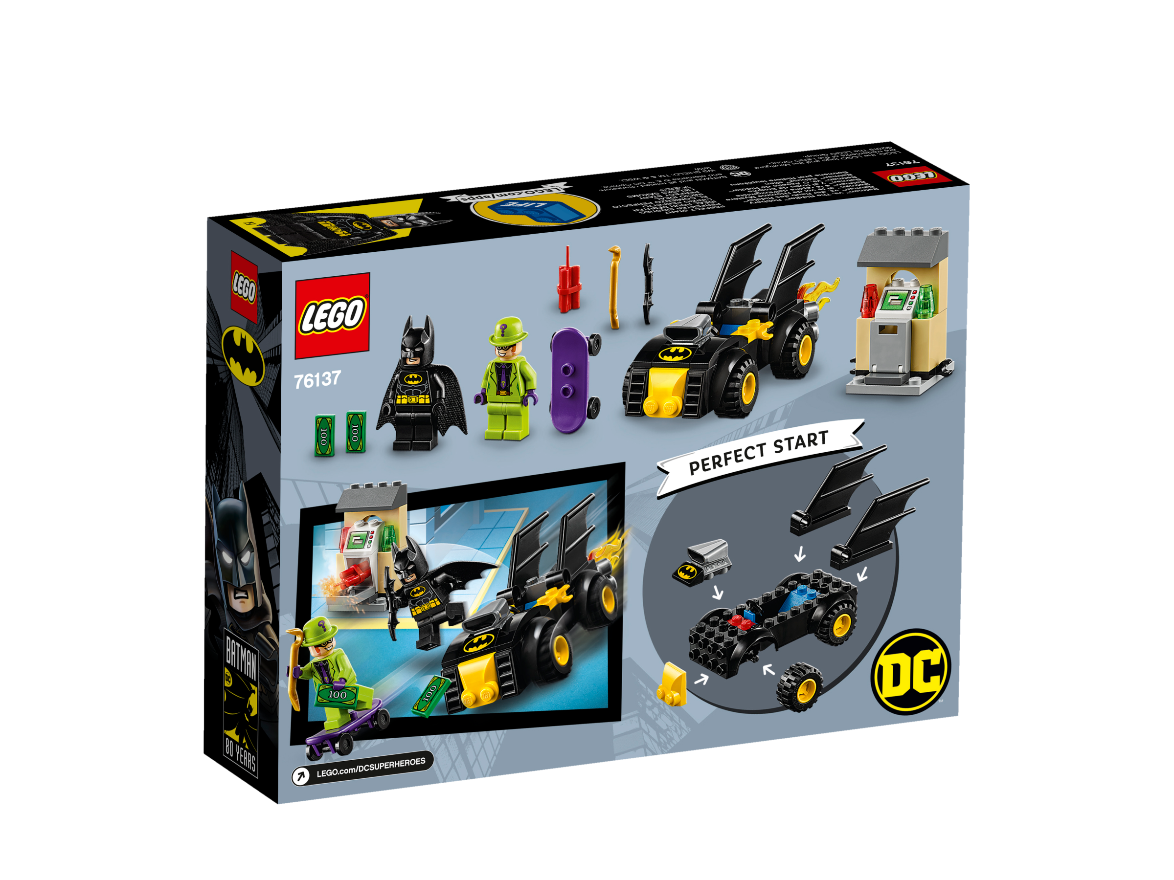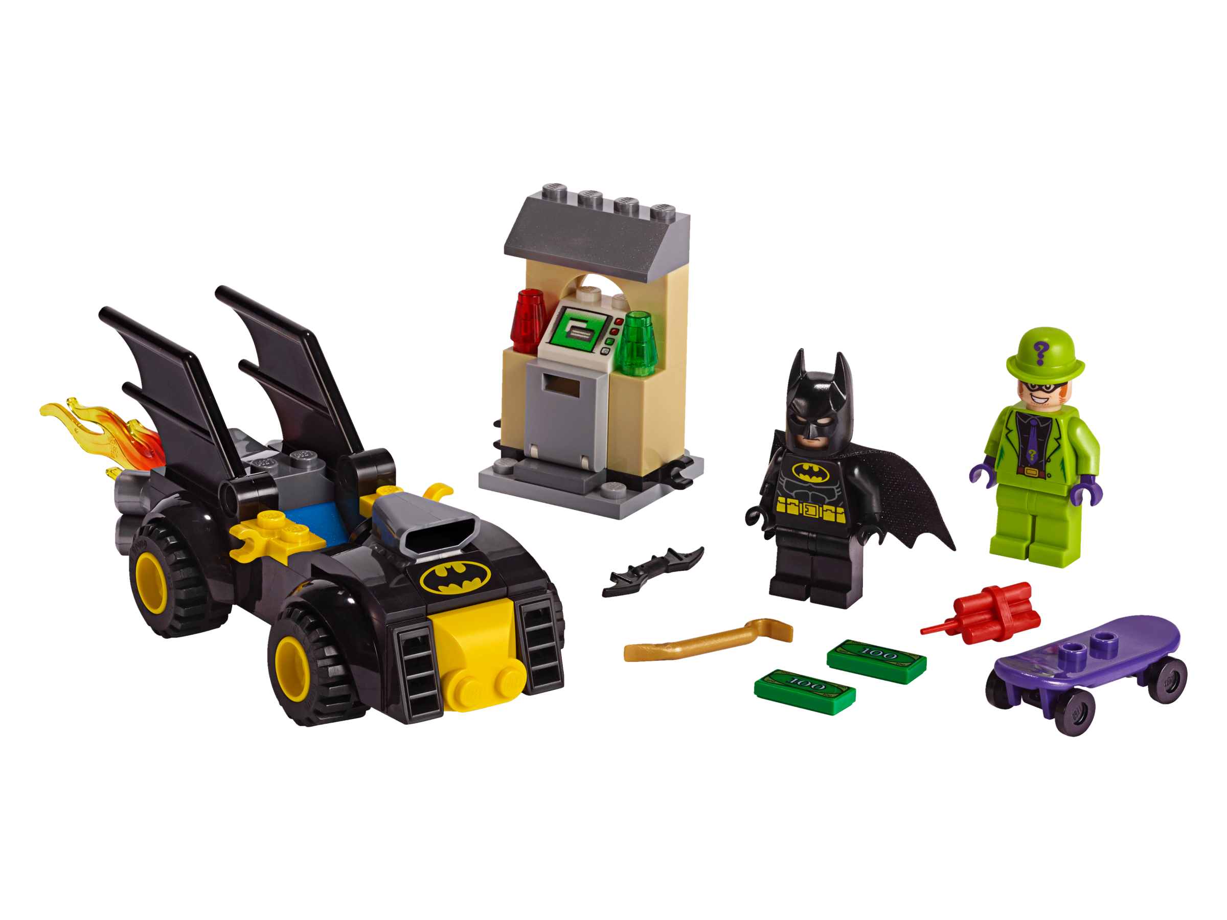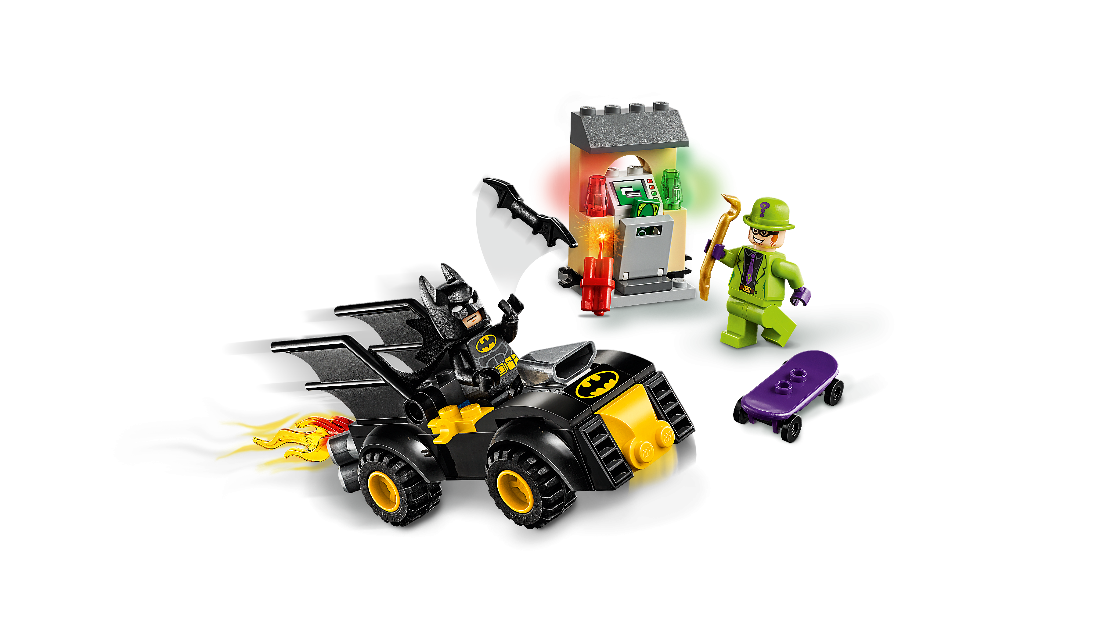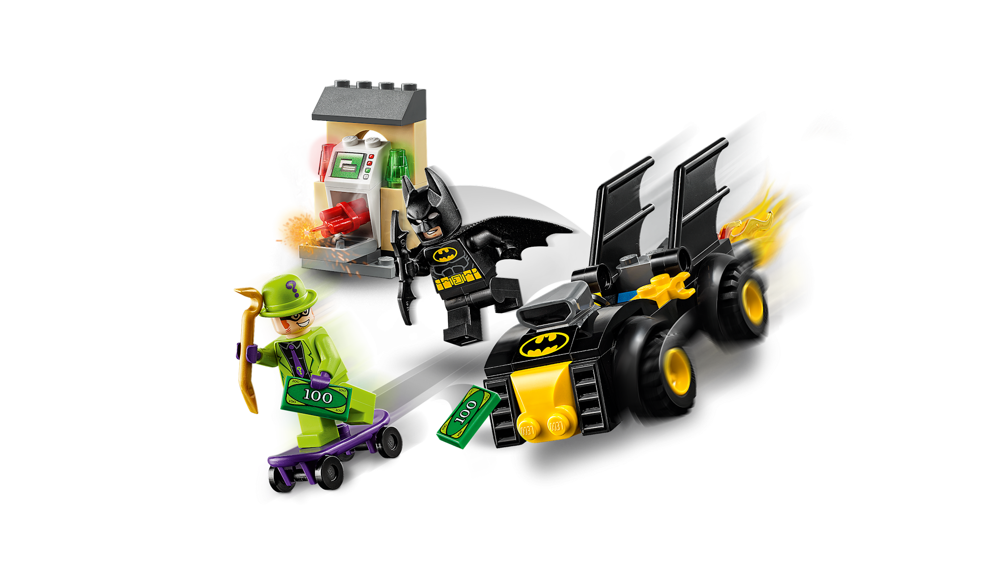Pomoz Batmanovi překazit -hádankářovu vloupačku do banky GOTHAM CITY™ v této vzrušující sadě LEGO® DC Batman! Superpadouch vykradl bankomat a teď prchá na svém skateboardu. Skoč do Batmanova úžasného LEGO Batmobilu a pořádně na to šlápni, abys ho dohonil. Sraz Hádankáře batarangem k zemi a zachraň ukradené peníze!