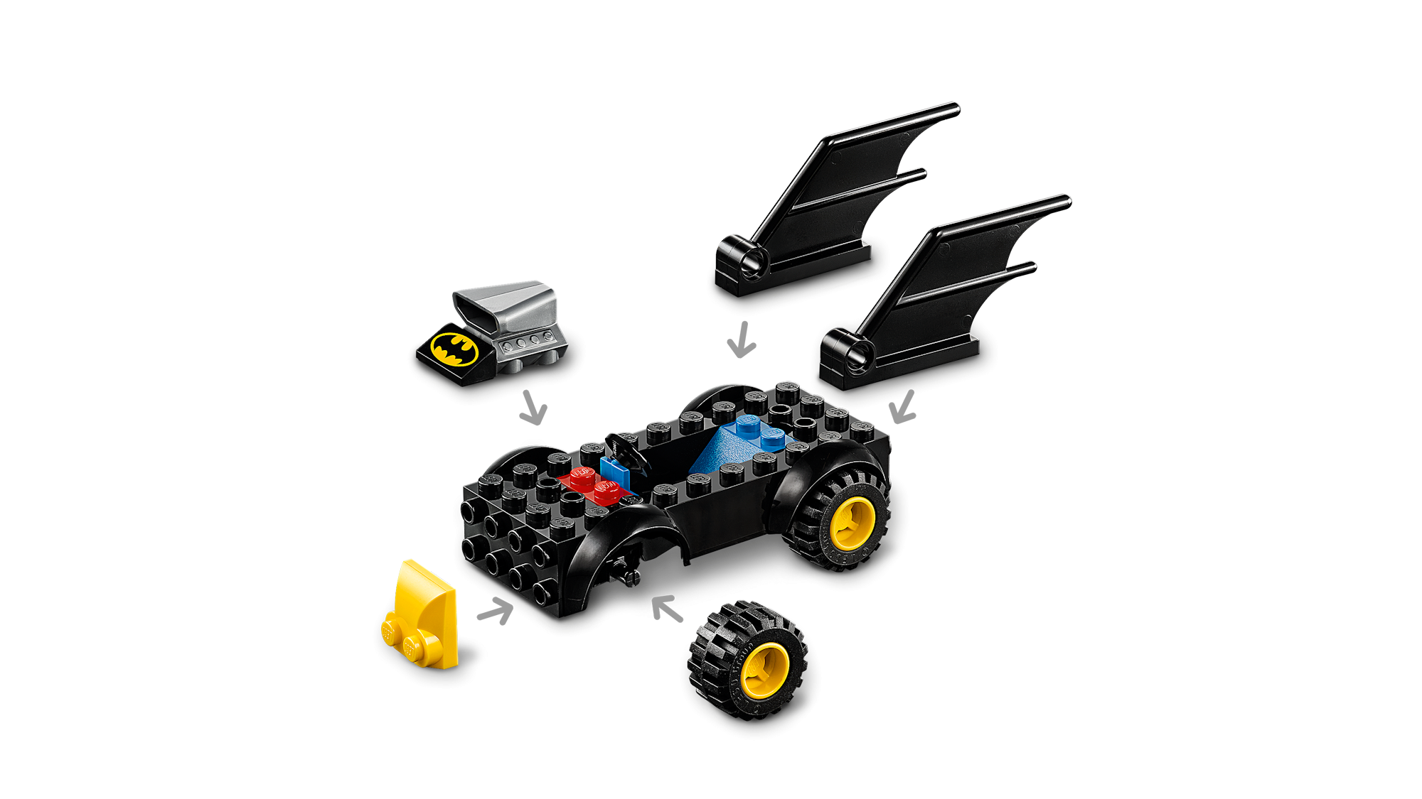 - Snadno sestavitelný Batmobil nabízí začátečnickou kostku, kokpit pro minifigurku, 2 přípojné body pro Batmanův batarang, 2 netopýří křídla a plamen z výfuku.