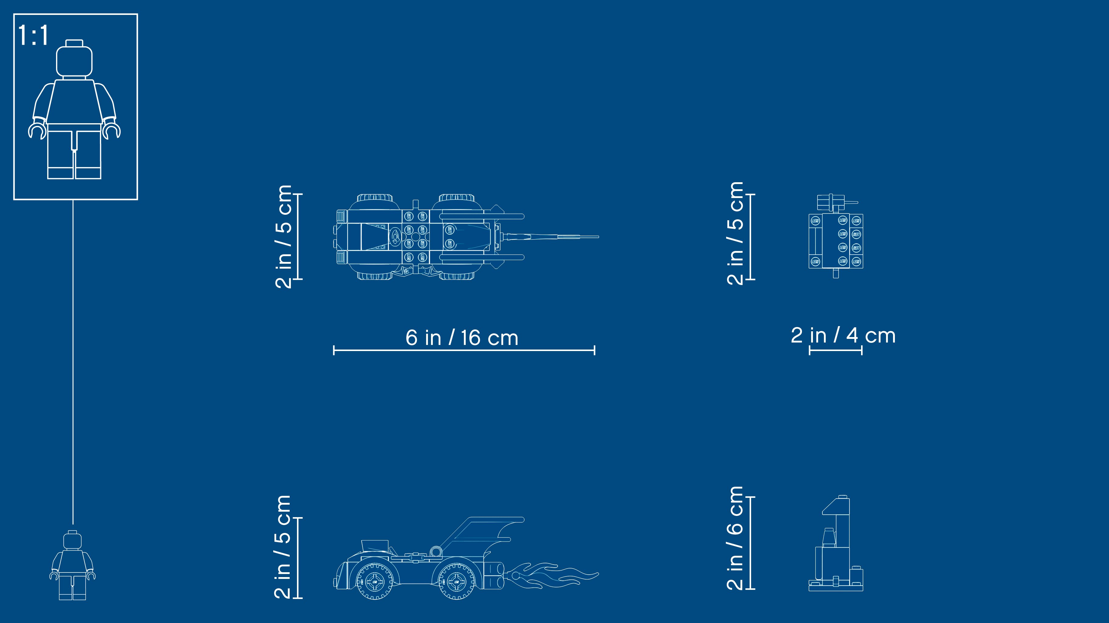 - Batmobil měří přes 4 cm na výšku, 15 cm na délku a 4 cm na šířku.