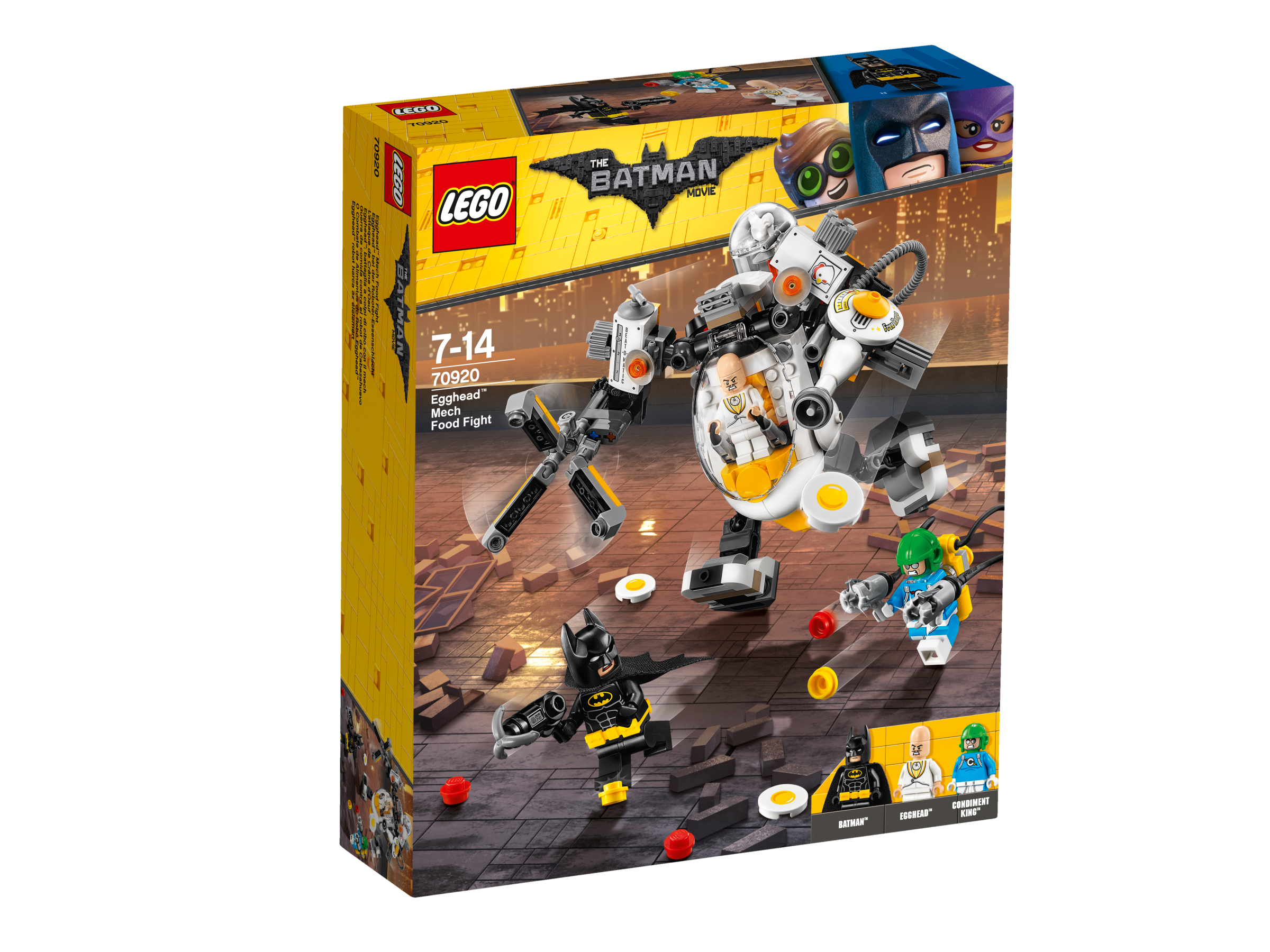 - Obsahuje 3 minifigurky: Batman™, Egghead™ a Condiment King™.