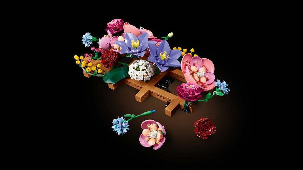 - ROZMĚRY – Květinová stavebnice LEGO® se skládá z 879 dílků a měří přes 22 cm na výšku, 42 cm na šířku a 8 cm do hloubky