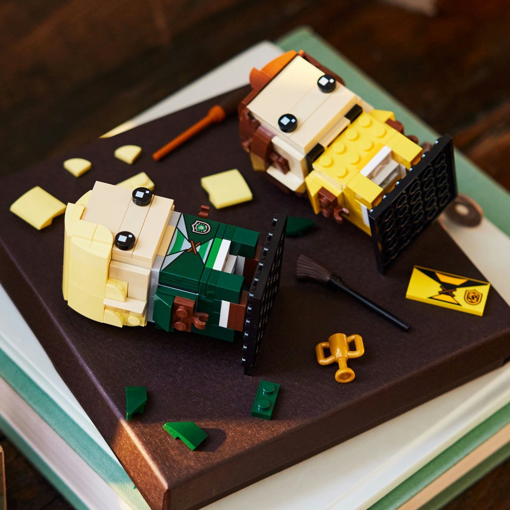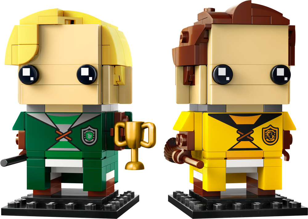- Draco Malfoy™ a Cedric Diggory ve stylu LEGO® BrickHeadz™ (40617) – Postavte si 2 postavy ve famfrpálových uniformách jejich kolejí a vystavte si je se školním pohárem a 2 košťaty