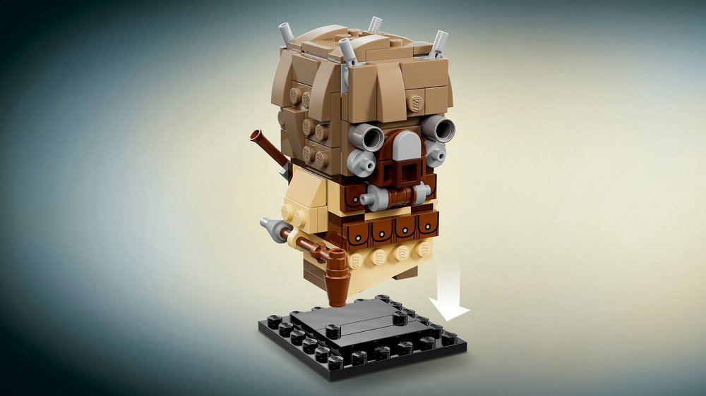 - Tuskenský nájezdník ve stylu LEGO® BrickHeadz™ – Sestavitelný tuskenský nájezdník od LEGO BrickHeadz (40615) s oblekem z filmu Star Wars: Nová naděje, holí gaffi a blasterem