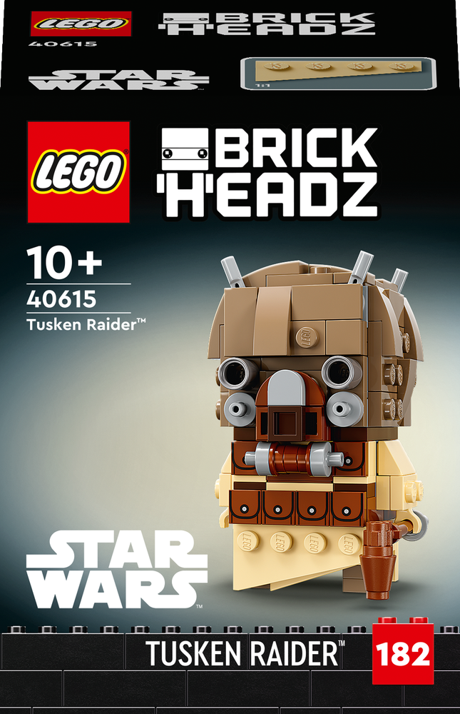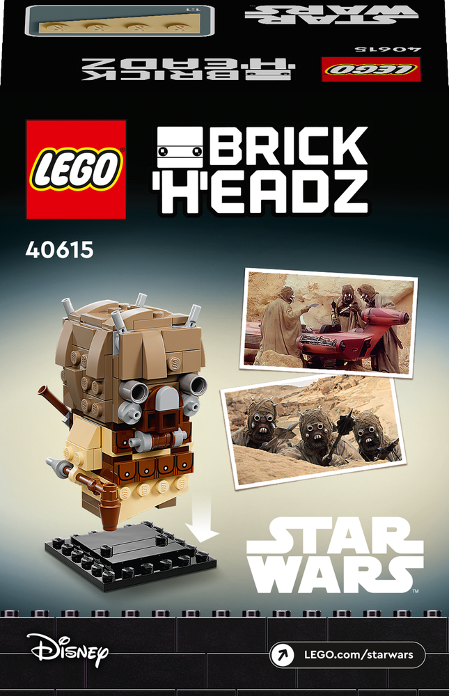 Když si fanoušci Star Wars™ postaví model LEGO® BrickHeadz™ tuskenského nájezdníka (40615), budou moci znovu prožít vzrušující dobrodružství z planety Tatooine. Pyšní se autentickými detaily, jako je oblek z filmu Star Wars: Nová naděje nebo hůl gaffi či blaster. Jedná se o skvělý dárek k jakékoli příležitosti pro fanoušky a sběratele Star Wars od 10 let. Postava z kostek je dodávána s podstavcem a bude nepřehlédnutelným doplňkem jakékoli sbírky Star Wars.