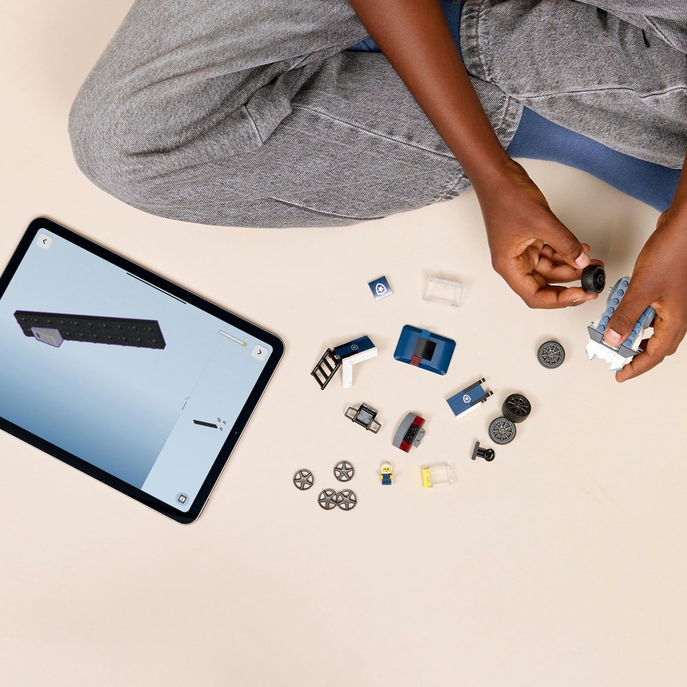 Děti si užijí stavění modelu LEGO City Autíčka – Policejní dodávka s intuitivní aplikací LEGO Builder, která jim umožňuje přibližovat a otáčet model ve 3D a ukládat a sledovat postup stavění. Stavebnice obsahuje 71 dílků.