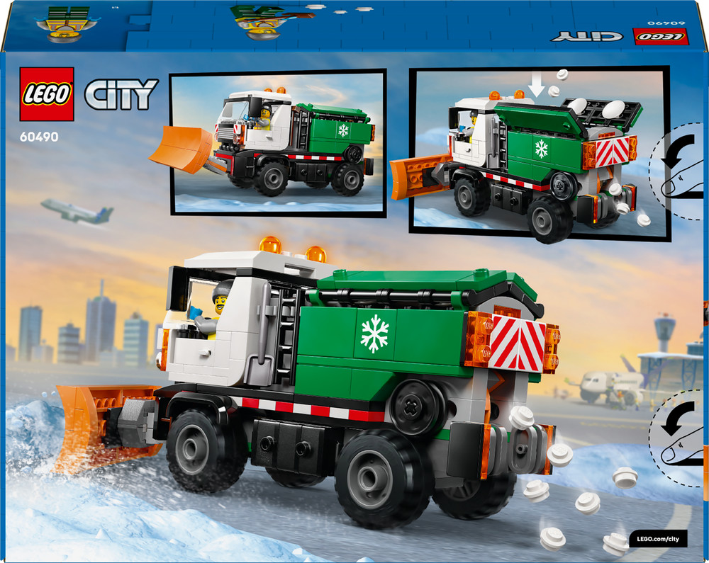 - PŘESNĚ JAKO VE SKUTEČNOSTI – Děti můžou naklánět, zvedat a spouštět pluh, tlačit vozidlo, aby sypalo dílky soli LEGO®, naklánět kabinu, aby se dostaly k motoru, a posadit minifigurku řidiče za volant