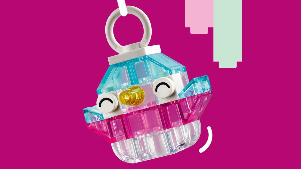 - Kreativní stavebnice – Průsvitné kostky, dílky o očima a ústy a dílky na zavěšení dodají dětským výtvorům jiskru a malí stavitelé si s nimi užijí spoustu zábavy