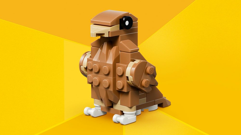 Děti si můžou postavit křečka s pohyblivou hlavou a předníma nohama a fialovou květinou. Model pak můžou přestavět na ježka s květinou nebo pohyblivého orla s vejcem v hnízdě. A když model dokončí a dohrají si, můžou si jej vystavit jako roztomilou dekoraci na poličce nebo na stole.