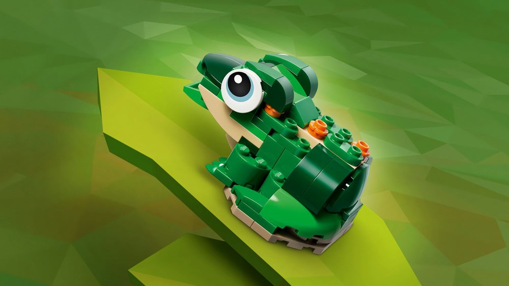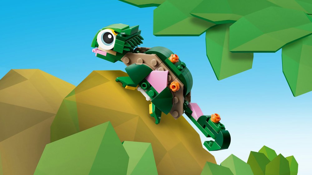 Děti si mohou vybrat, jestli si postaví želvu s pohyblivou hlavou a tlamou a krásným růžovým leknínem, kterou pak lze přestavit na chameleona s pohyblivou hlavou a ocasem nebo na žábu s pohyblivou tlamou. Až si děti dohrají, jednotlivé modely si můžou vystavit jako zábavnou dekoraci do pokoje.