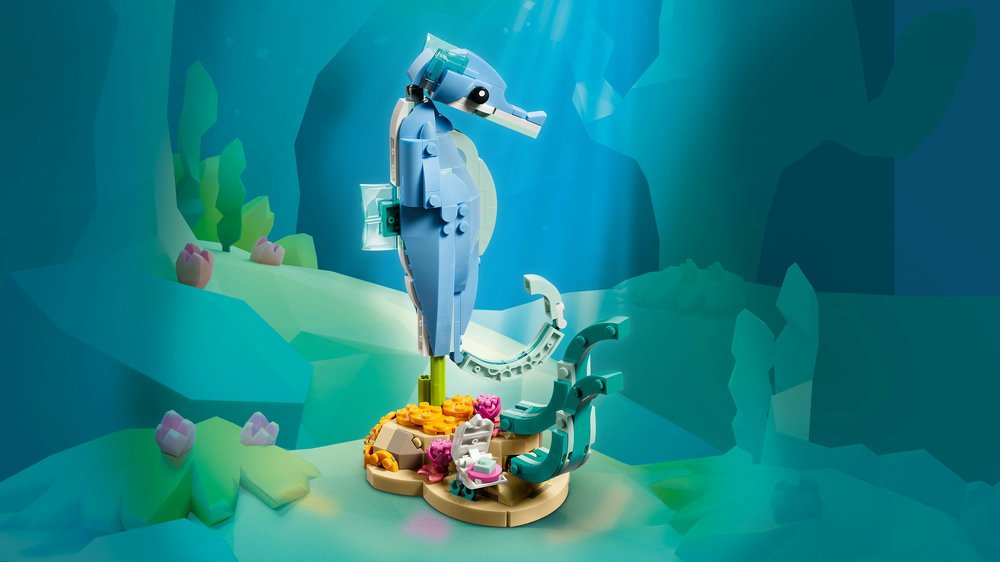 Děti si můžou sestavit dynamický model dospělého delfína s mládětem s pohyblivými částmi, kteří plavou na vlně nad korálovým útesem. Toho pak přestaví na pohyblivého mořského koníka na barevném podstavci s mořskými řasami a polohovatelnou mušlí nebo na kraba vedle mořských rostlin a medúzy. Až si děti dohrají, modely si můžou hrdě vystavit na poličce nebo na stole jako krásnou přírodní dekoraci.