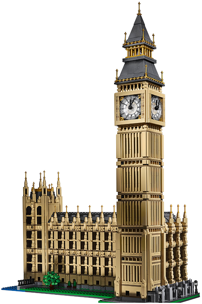- Big Ben obsahuje detailní sekci Westminsterského paláce a přilehlou Alžbětinu věž, 4 detailní ciferníky s pohyblivou hodinovou a minutovou ručičkou, a chodník, strom a trávník, které dokreslují prostředí kolem budovy.