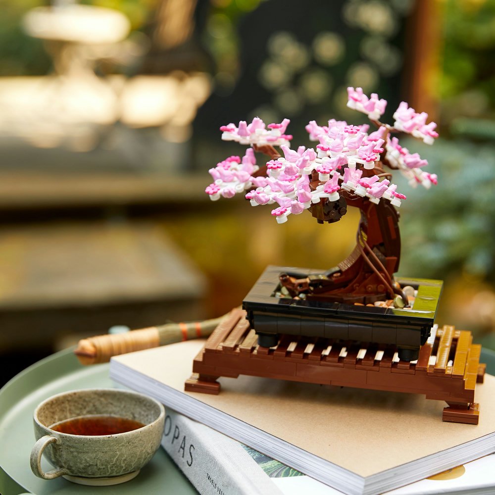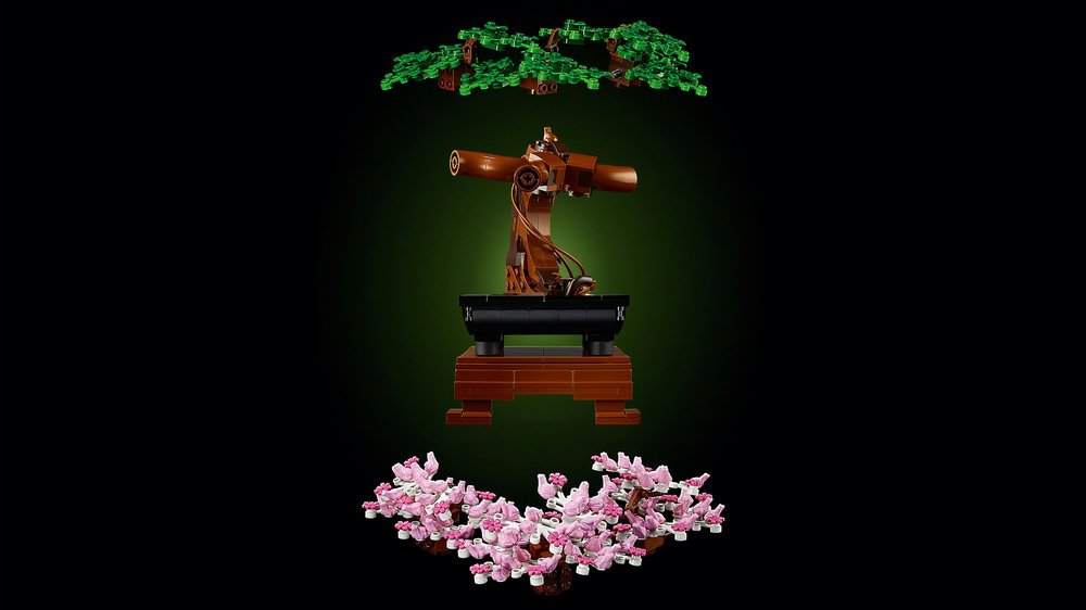 Umění pěstování bonsajů uchvacuje fantazii milovníků stromů po celá staletí. Nyní můžete toto starodávné umění oslavit pomocí LEGO® stavebnice s modelem bonsaje. Vychutnejte si pocit klidu, který zažijete při tvarování bonsaje pomocí zelených listů nebo růžových třešňových květů. Když zatoužíte po změně, jednoduše vyměňte barevné koruny a dosáhněte zcela nového vzhledu. Prohlédněte si růžové květy pořádně zblízka – vidíte malé žabky, které tvoří jednotlivé květy?