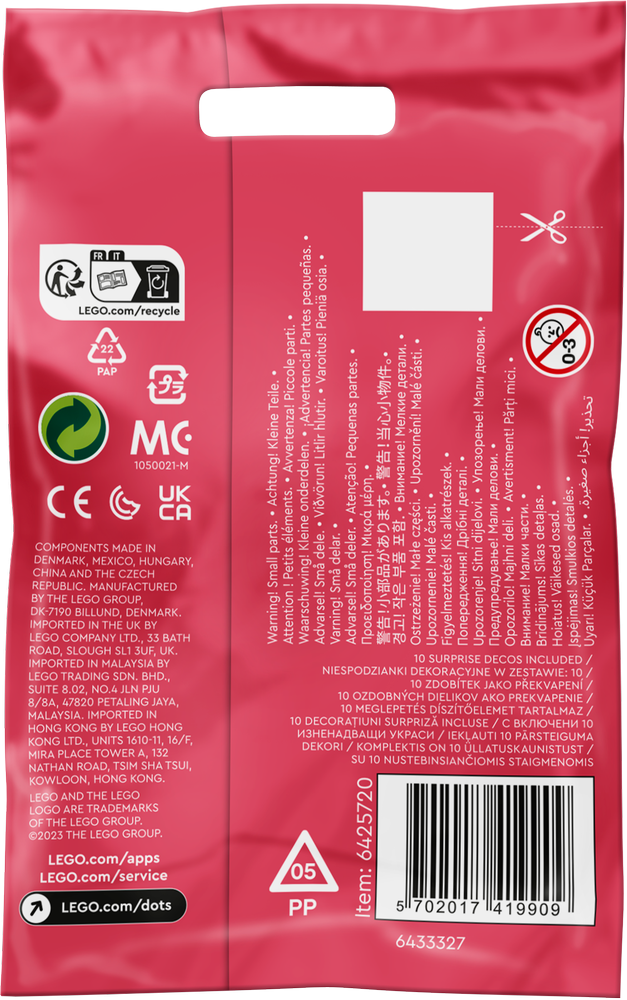 - Bezpečnost na prvním místě – Dílky LEGO® pouštíme na zem, zahříváme, drtíme, kroutíme a analyzujeme, abychom zajistili, že stavebnice DOTS doplňky – 8. série – Třpytky vyhovuje přísným globálním bezpečnostním standardům