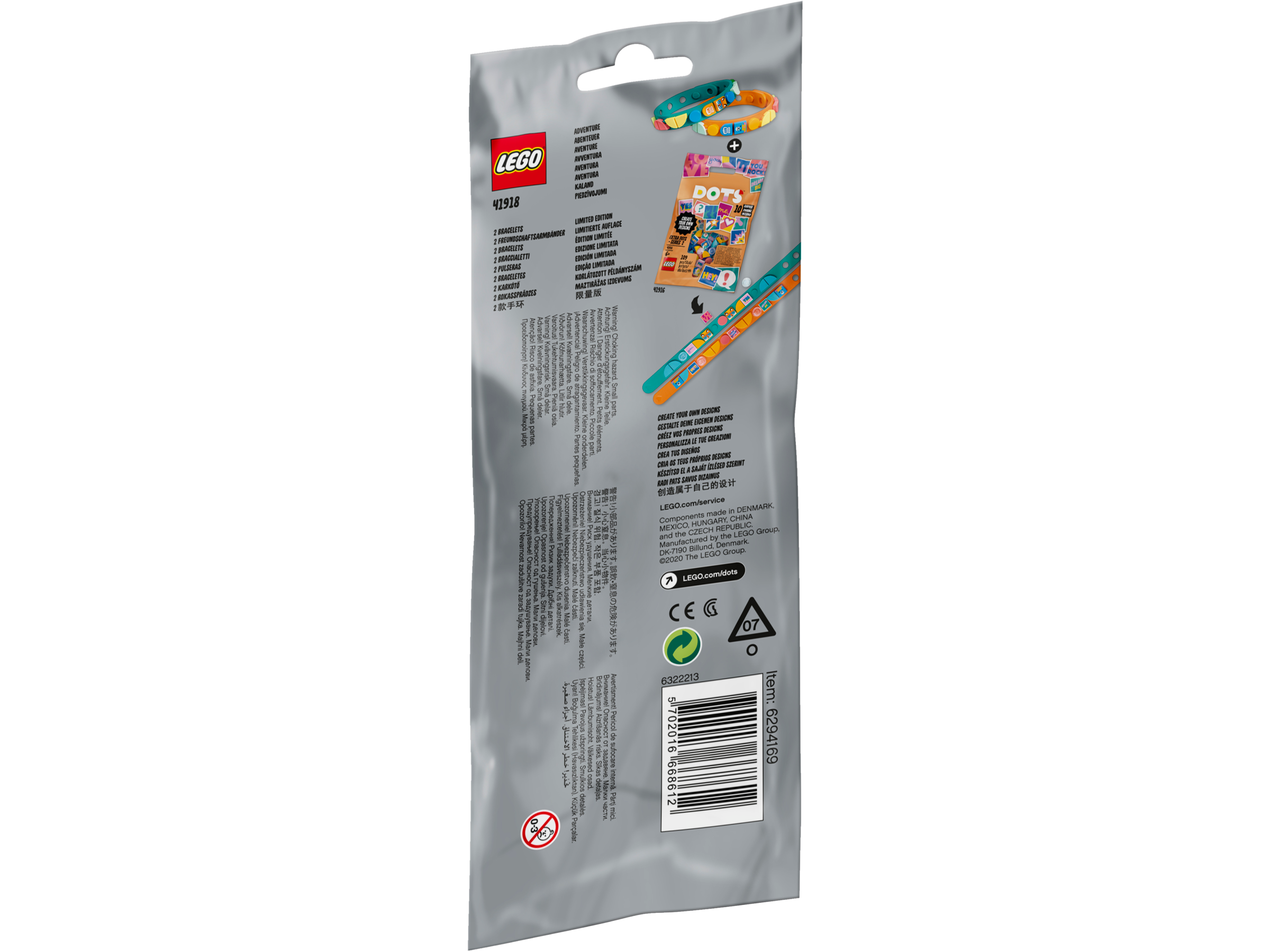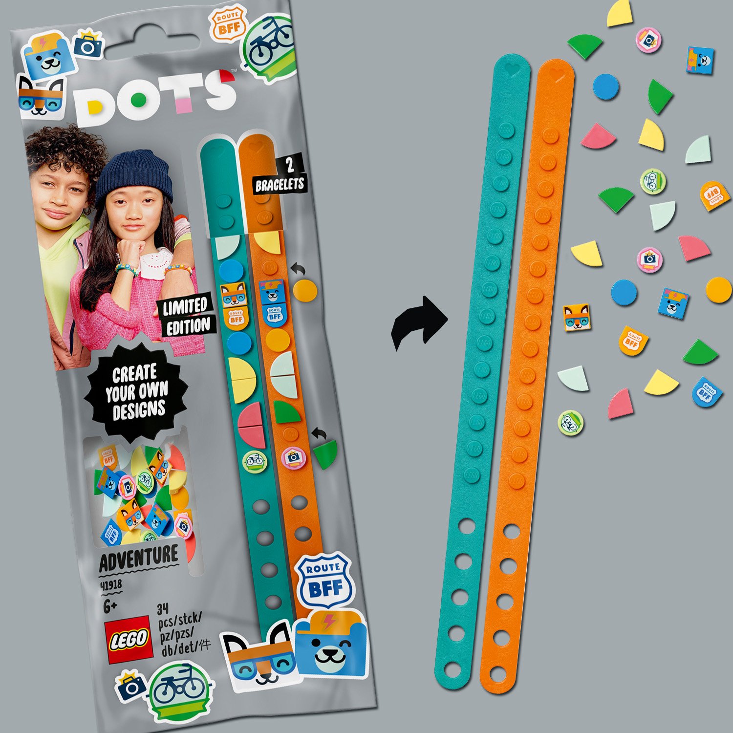 - Zaujměte malé návrháře zábavnou sadou na výrobu půvabných náramků přátelství Náramky dobrodružství (41918) od LEGO® DOTS z limitované edice, která obsahuje 2 nastavitelné náramky a 32 dílků. Stačí otevřít balíček a hraní může začít!