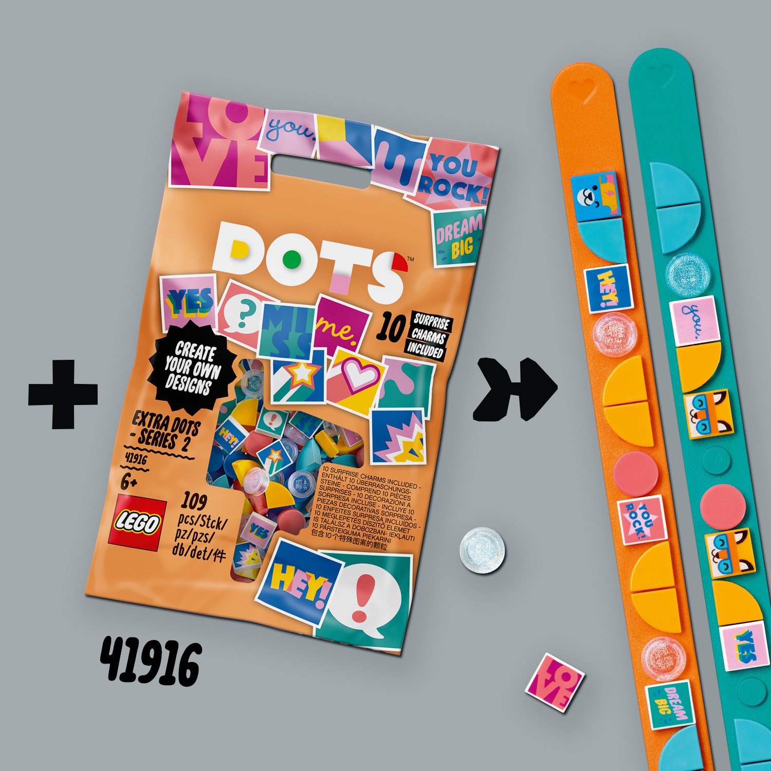 - Tyto barevné dílky lze kombinovat s ostatními stavebnicemi, a sdílet tak kreativní zábavu s kamarády. Děti mohou použít také zdobítka ze sady LEGO® DOTS doplňky – série 2 (41916), která jim umožní oživit sady na výrobu náramků.
