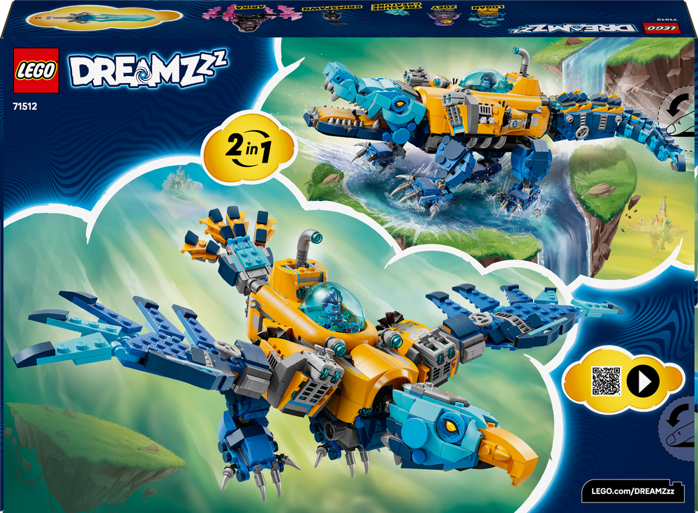 Se stavebnicí LEGO® DREAMZzz™ Krokodýlí ponorka (71512) mohou děti od 8 let popustit uzdu kreativitě. Nabízí hned 2 možnosti sestavení plné akce, díky nimž si malí snílci postaví krokodýlí ponorku nebo létajícího orla.