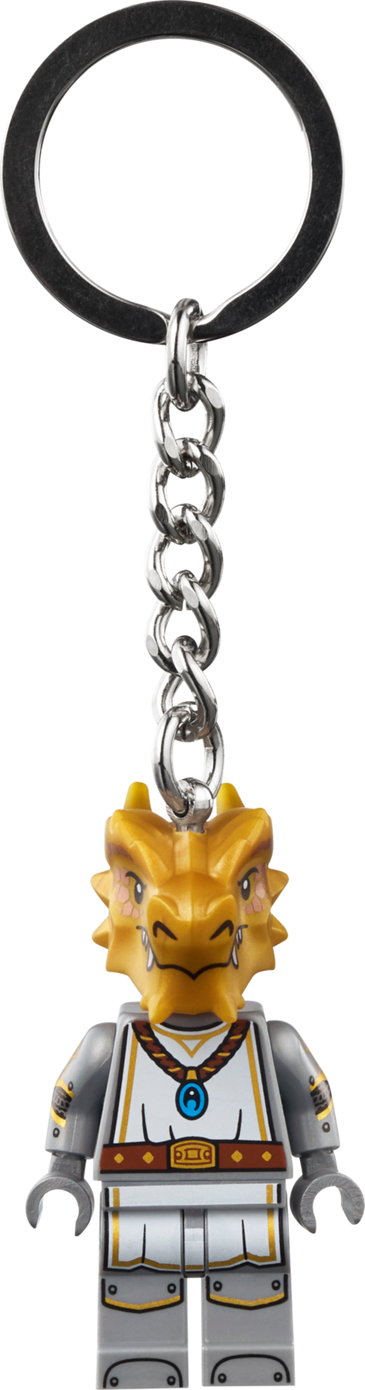 - MINIFIGURKA DRAKOROZENÉHO RYTÍŘE NA KLÍČE – Obsahuje minifigurku drakorozeného rytíře LEGO® s pevným kovovým kroužkem na klíče a řetízkem