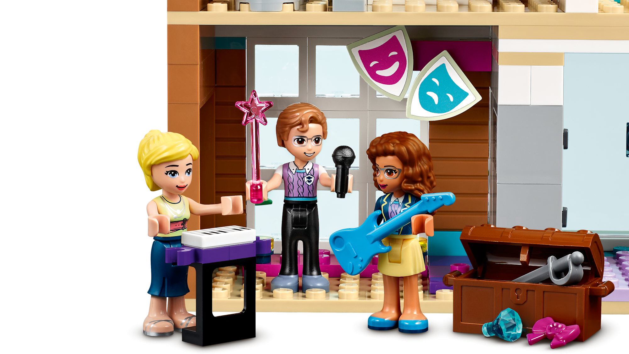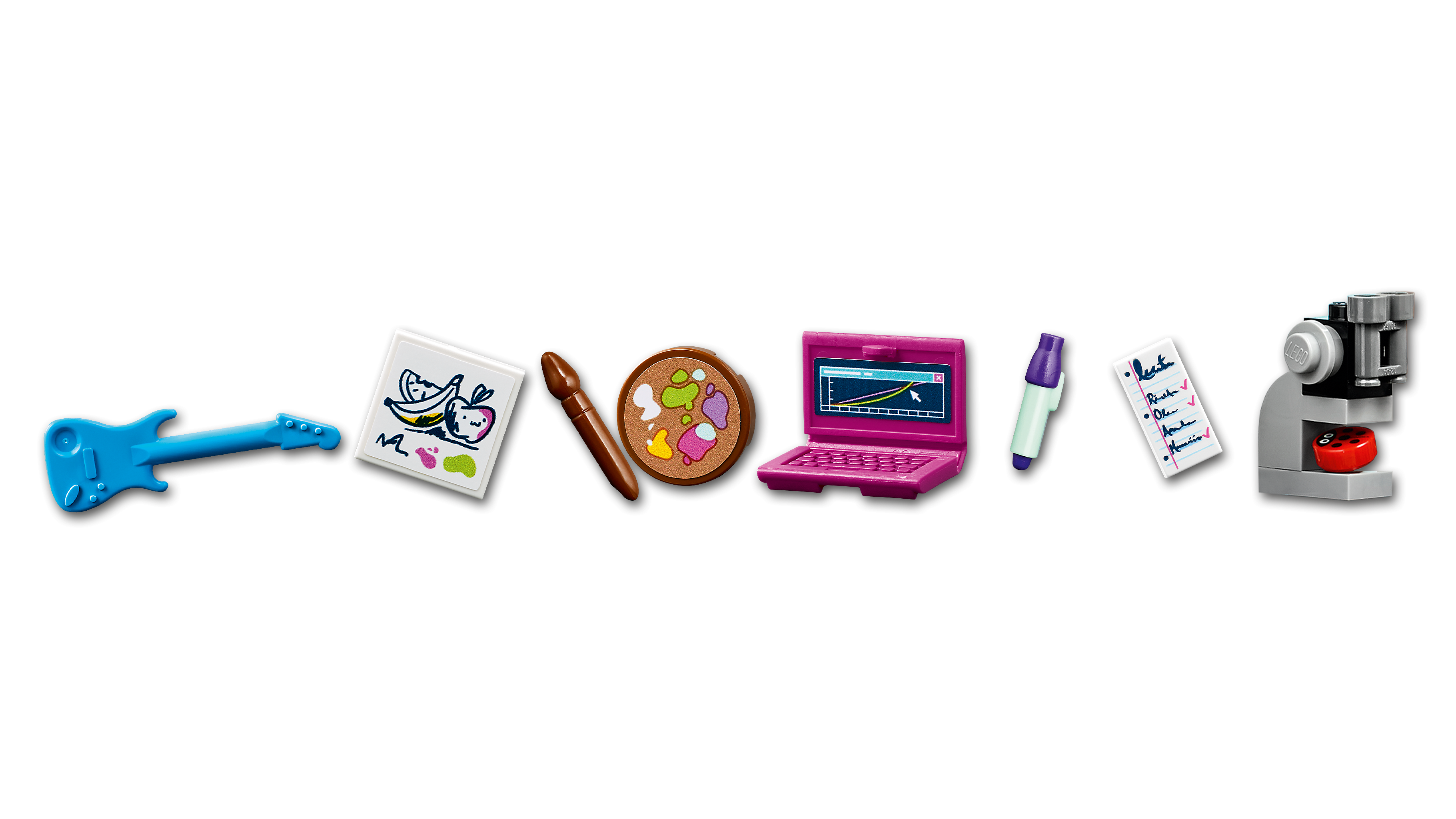 - Tato sada od LEGO® Friends přináší také nespočet školních doplňků, včetně převleků a rekvizit pro dramatický kroužek, hudebních nástrojů, berušky a mikroskopu, nebo štětců, barev a malířského stojanu.