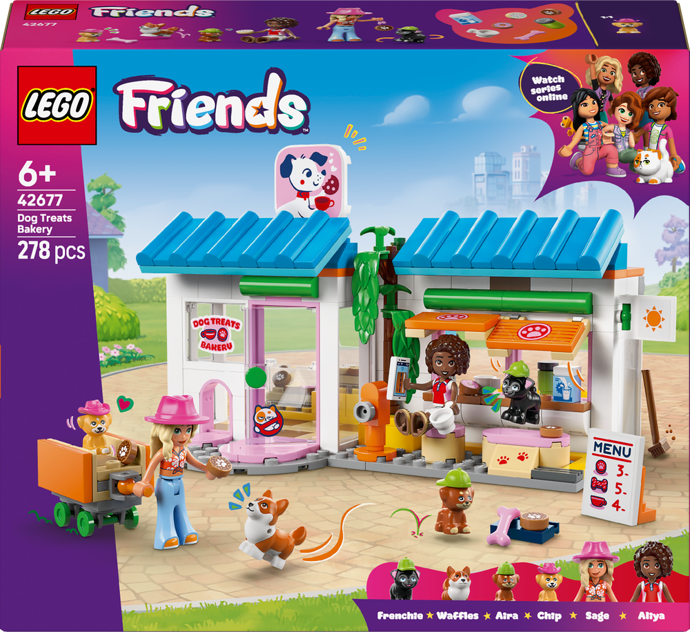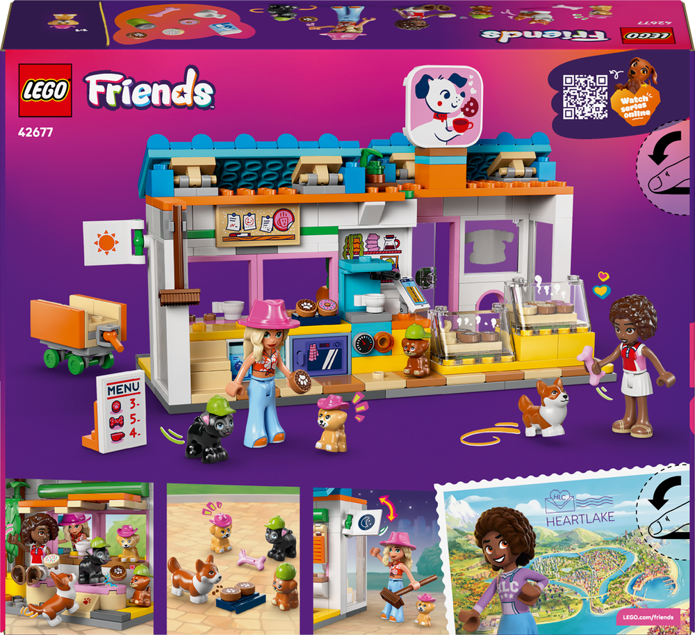 - PŘÍBĚHY O DOMÁCÍCH MAZLÍČCÍCH – Vymýšlejte příběhy, které rozveselí štěňátka i jejich majitele, v pekárně LEGO® Friends Pekárna pamlsků pro pejsky (42677), která obsahuje troubu, kávovar, ledničku a další
