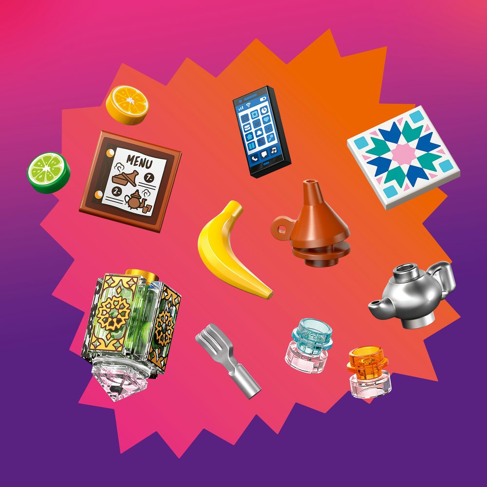 - SPOUSTA DOPLŇKŮ – Podpořte kreativitu a přizpůsobte si stavebnici díky mnoha doplňkům, včetně dekorativních podlahových dlaždic, lamp, příborů, sklenic, tažínů, jídelních lístků, potravin LEGO®, konvice a dalších prvků