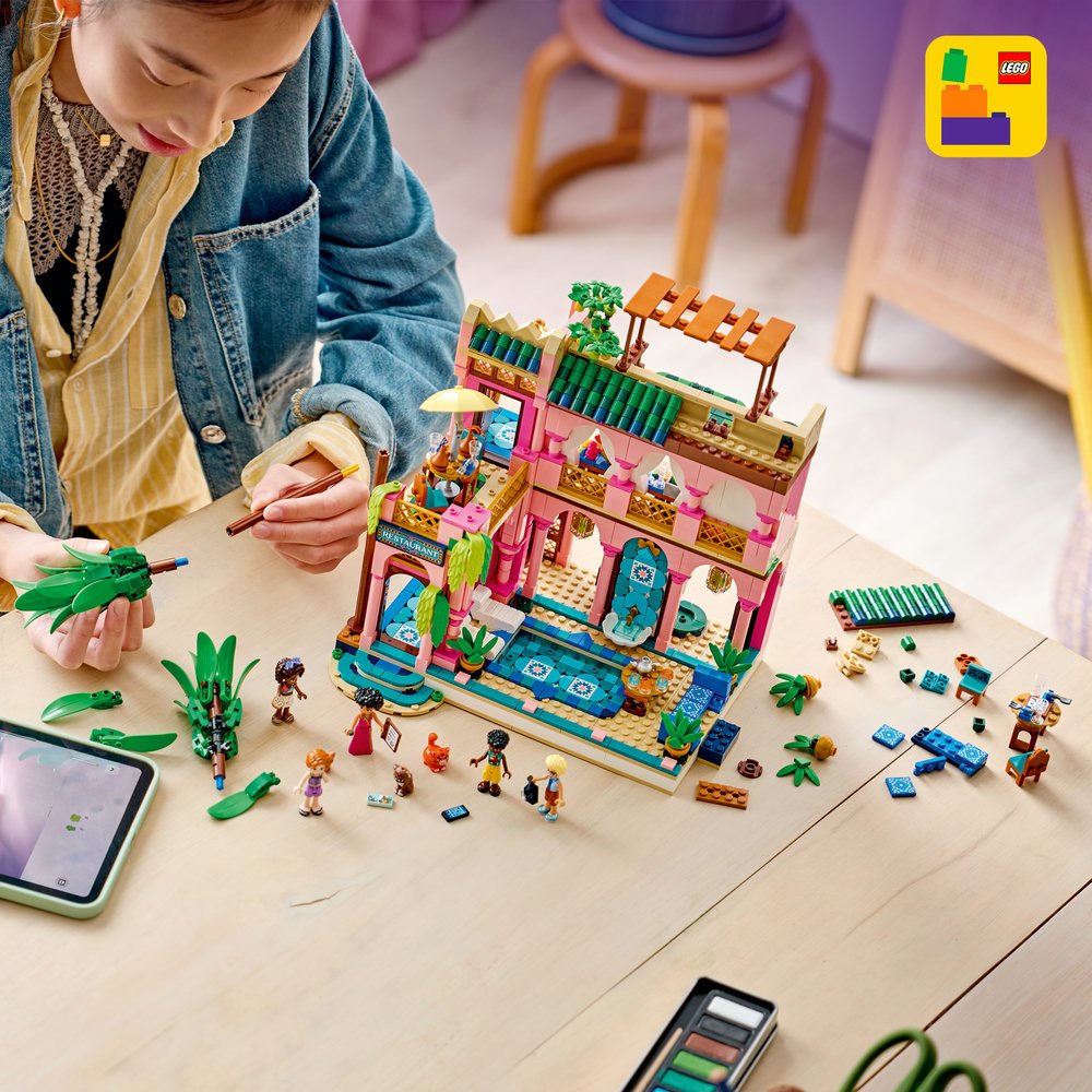 - ROZMĚRY – Stavebnice se skládá z 1 465 dílků a model restaurace LEGO® Friends měří přes 26 cm na výšku, 30 cm na šířku a 19 cm do hloubky