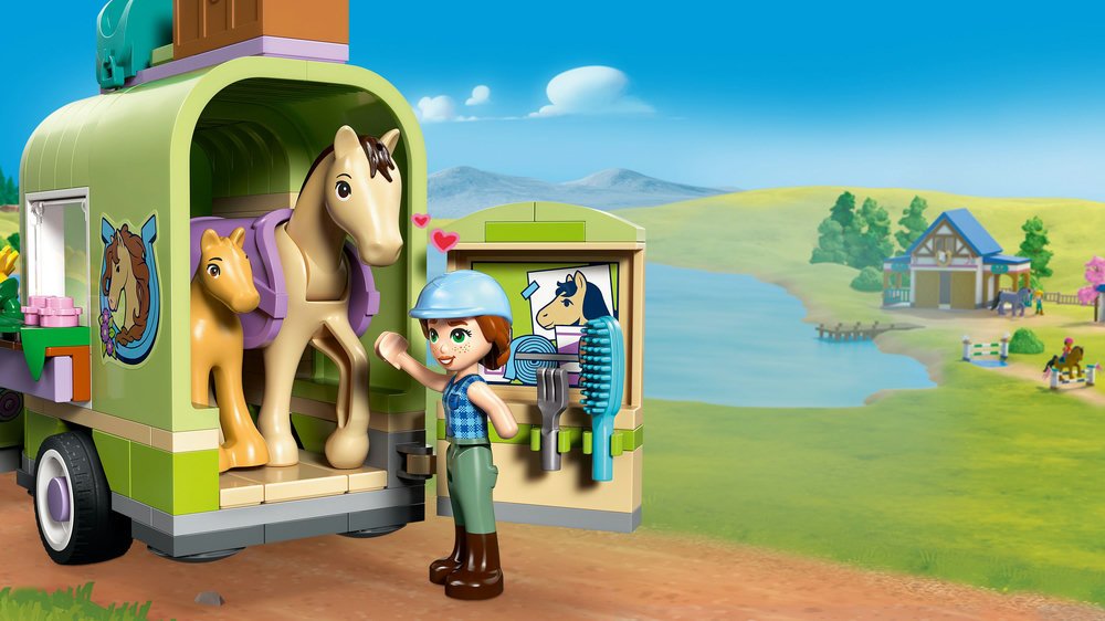 Holky a kluci si s touto zvířecí stavebnicí užijí rozmanité způsoby hraní. Mohou si vymýšlet příběhy o Autumn a Matilde, které řídí auto. Otevřou přívěs, aby pozdravily koně a hříbě. Pak koně osedlají a připraví se na vyjížďku. Součástí je menší model s prostorem na piknik, rozcestníkem, jezerem a plotem, který lze přeskočit.