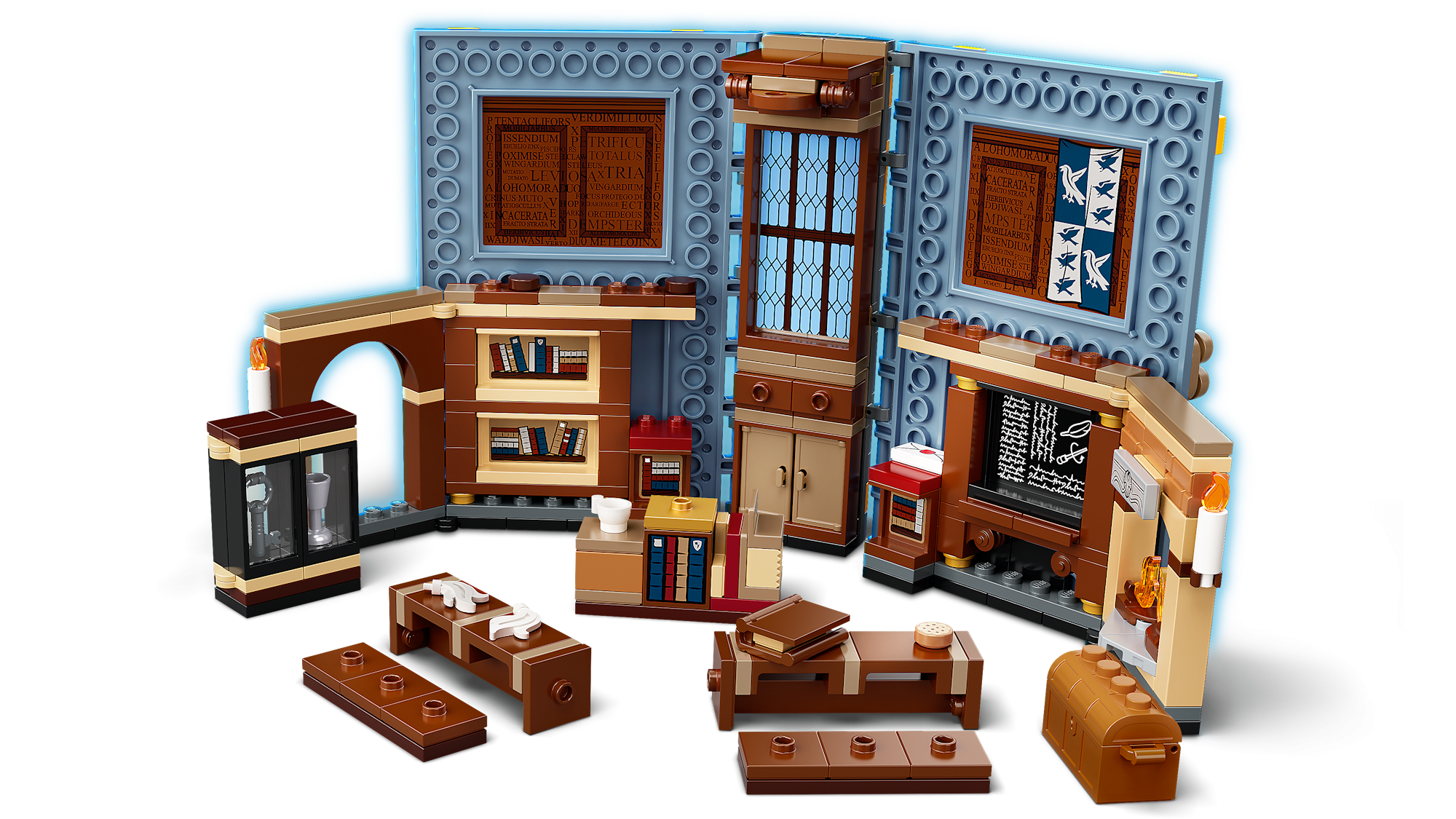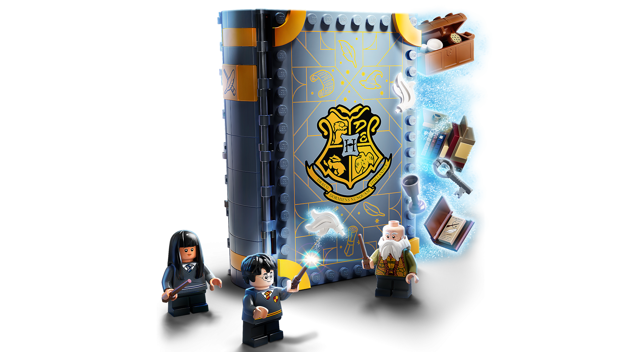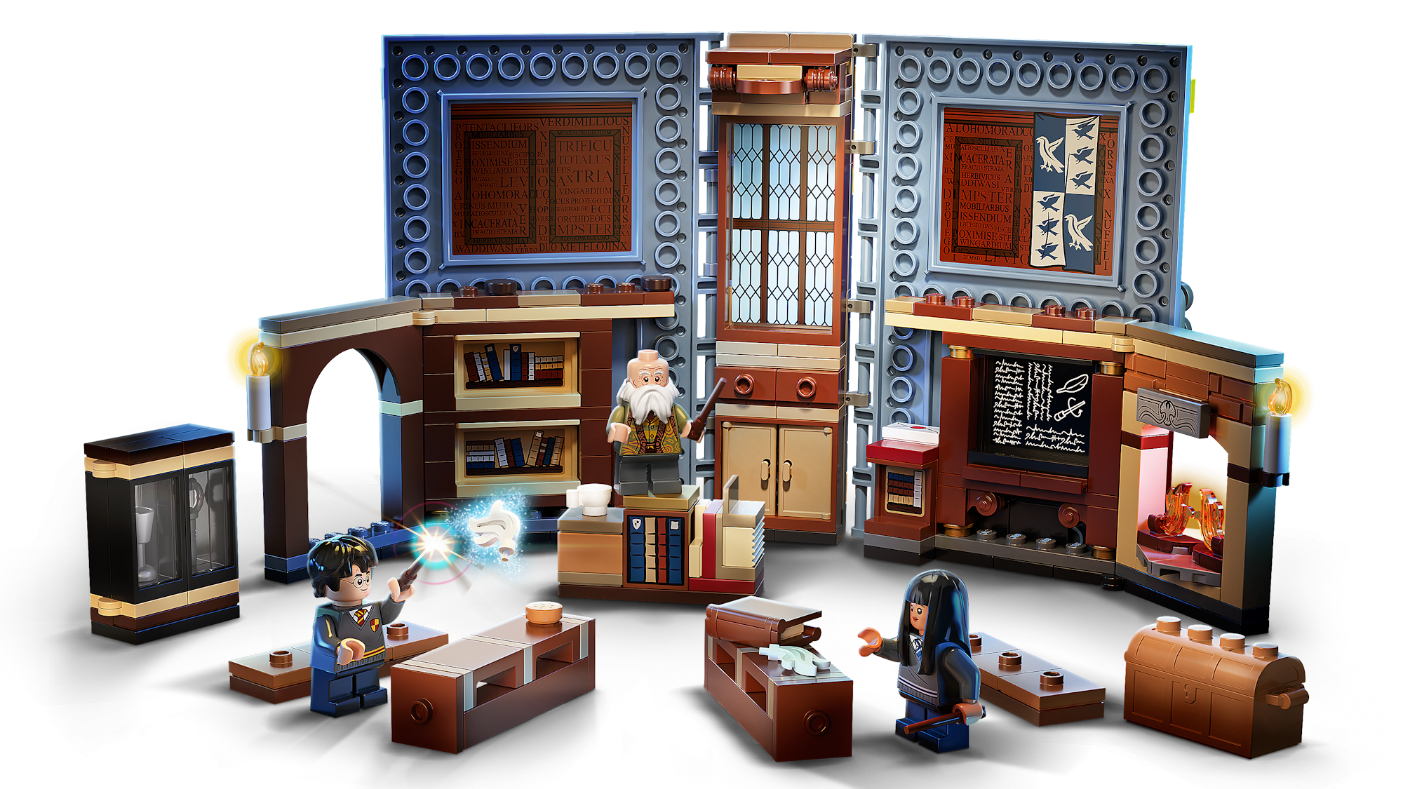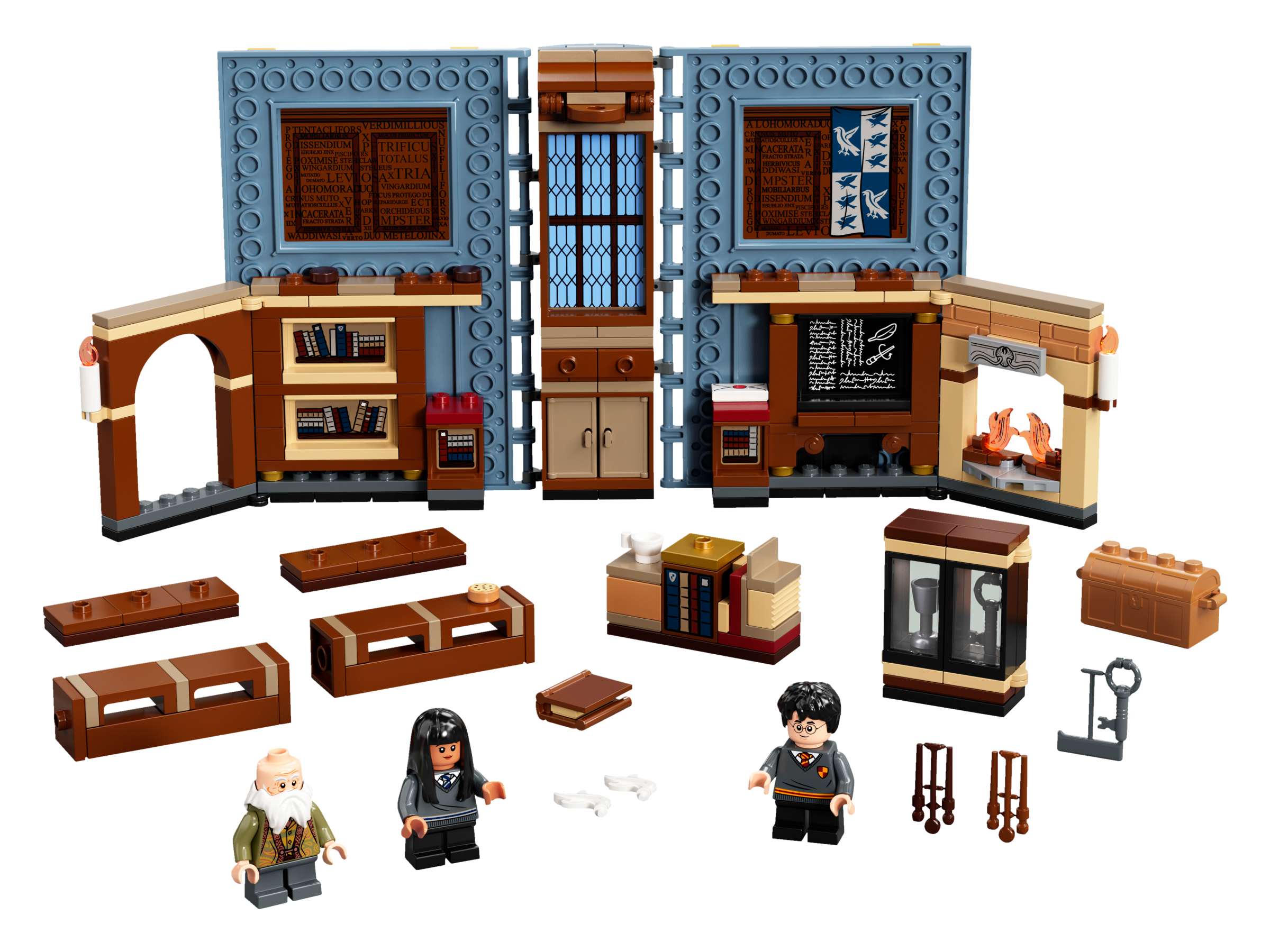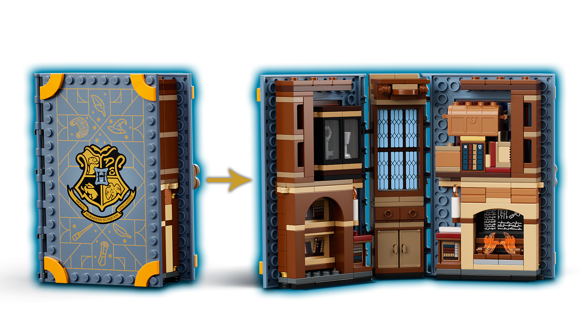 - Stavebnice Kouzelné momenty z Bradavic: Hodina kouzelných formulí (76385) od LEGO® Harry Potter™ má podobu knihy z kostek. Když ji děti otevřou, mohou si prohlédnout učebnu profesora Kratiknota z filmové ságy Harry Potter.