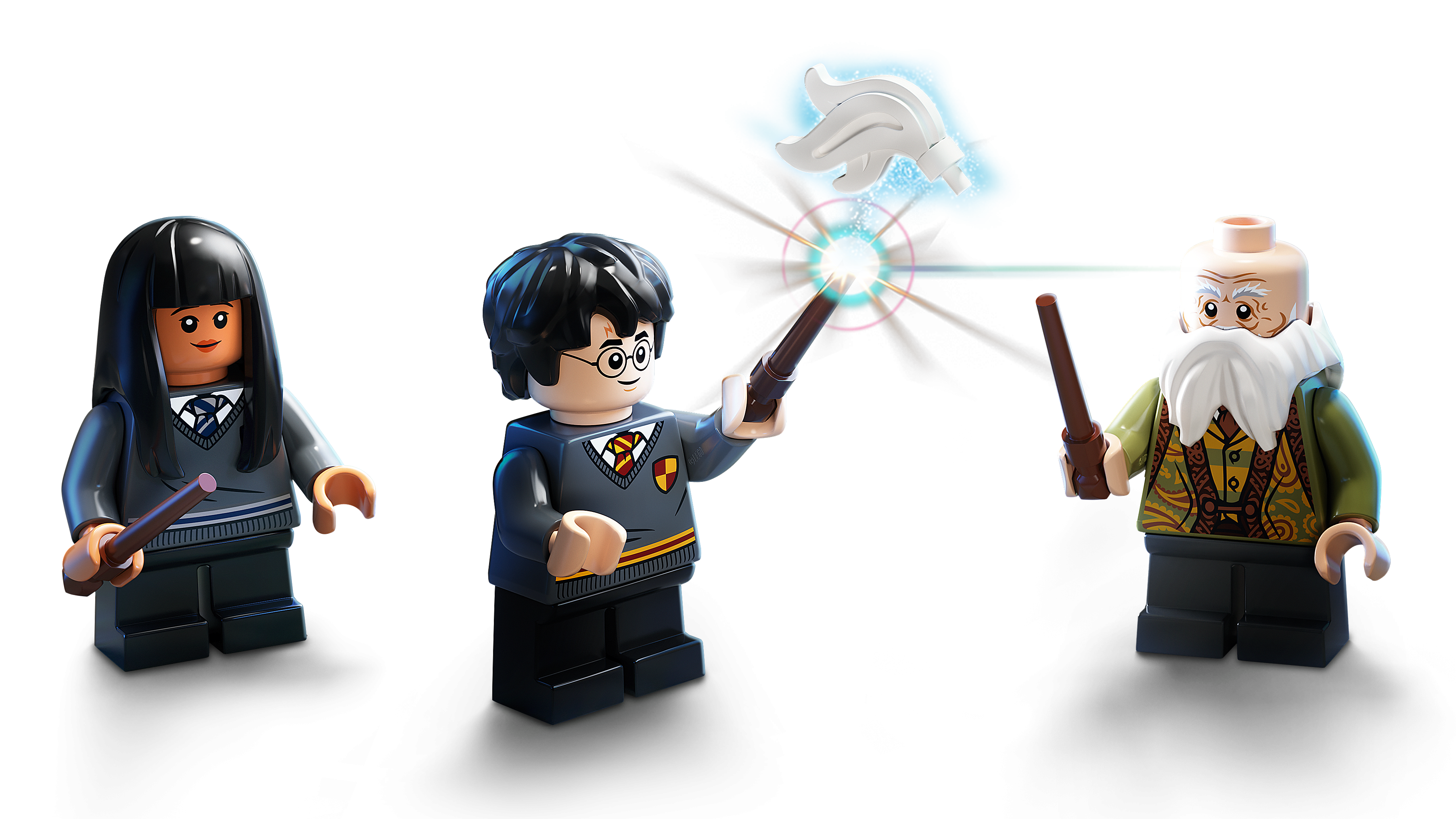 - Obsahuje minifigurky Harryho Pottera, Cho Changové a profesora Kratiknota, tabuli, knihovnu, krb, knihu zaklínadel a spoustu autentických doplňků.