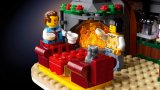 V tomto modelu třípatrové chaty nechybí vybavená recepce s přepážkou pro registraci, svítícím ohýnkem a kávovarem. Ve druhém patře najdete pokoj pro hosty s dalším ohýnkem a 2 postelemi a ve třetím pokoji na vás čeká pokoj v podkroví. Ve venkovním prostoru je prodejna dřeva, box na lyže, kluziště, záchod, vánoční stromeček, 5 minifigurek a figurka kočky, veverky a ptáčka.Vánoční stavění pro celou rodinu