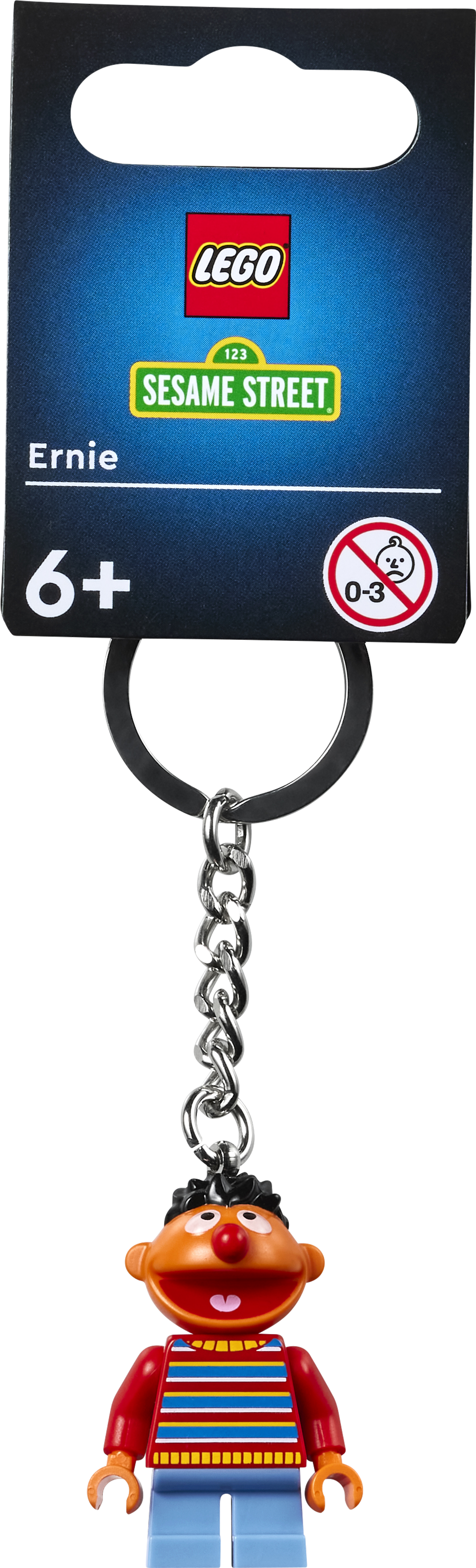 - Přívěsek na klíče s Erniem od LEGO® Ideas (854195) – Přívěsek v podobě minifigurky LEGO® Ernieho, která je připevněná k pevnému kovovému řetízku s kroužkem. Upozornění: minifigurku není možné od řetízku oddělit