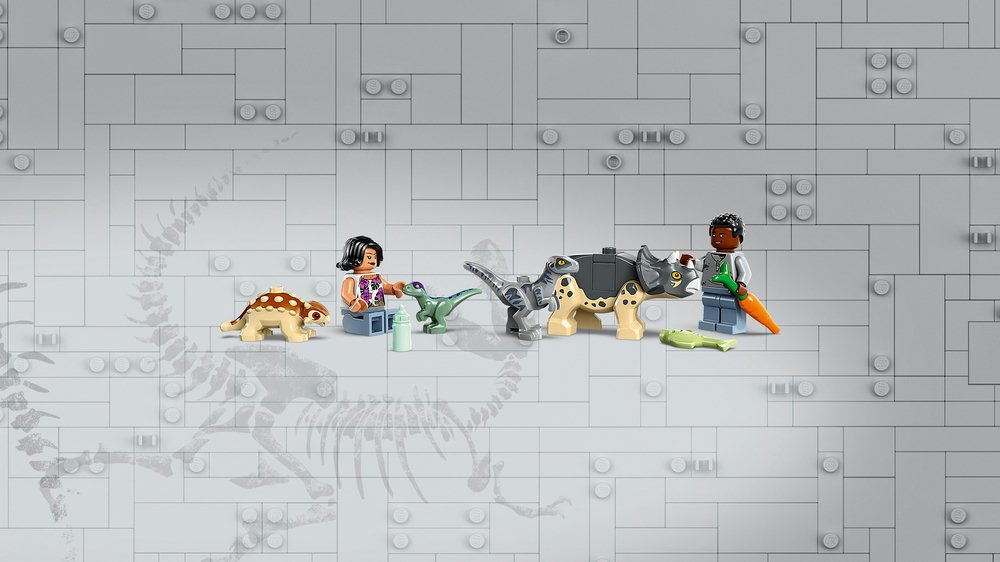 Fanoušci od 4 let si se stavebnicí Záchranářské středisko pro dinosauří mláďata (76963) užijí spoustu legrace a naučí se pečovat o malé dinosaury. Těšit se mohou také na terénní vozidlo a výzkumnou zónu s jeskyní se začátečnickými kostkami nebo na krmnou stanici. 2 minifigurky, figurky mláděte ankylosaura, triceratopse a velociraptora a figurky malého velociraptora a dospělého pteranodona zaručí, že se děti mohou ihned pustit do hraní.