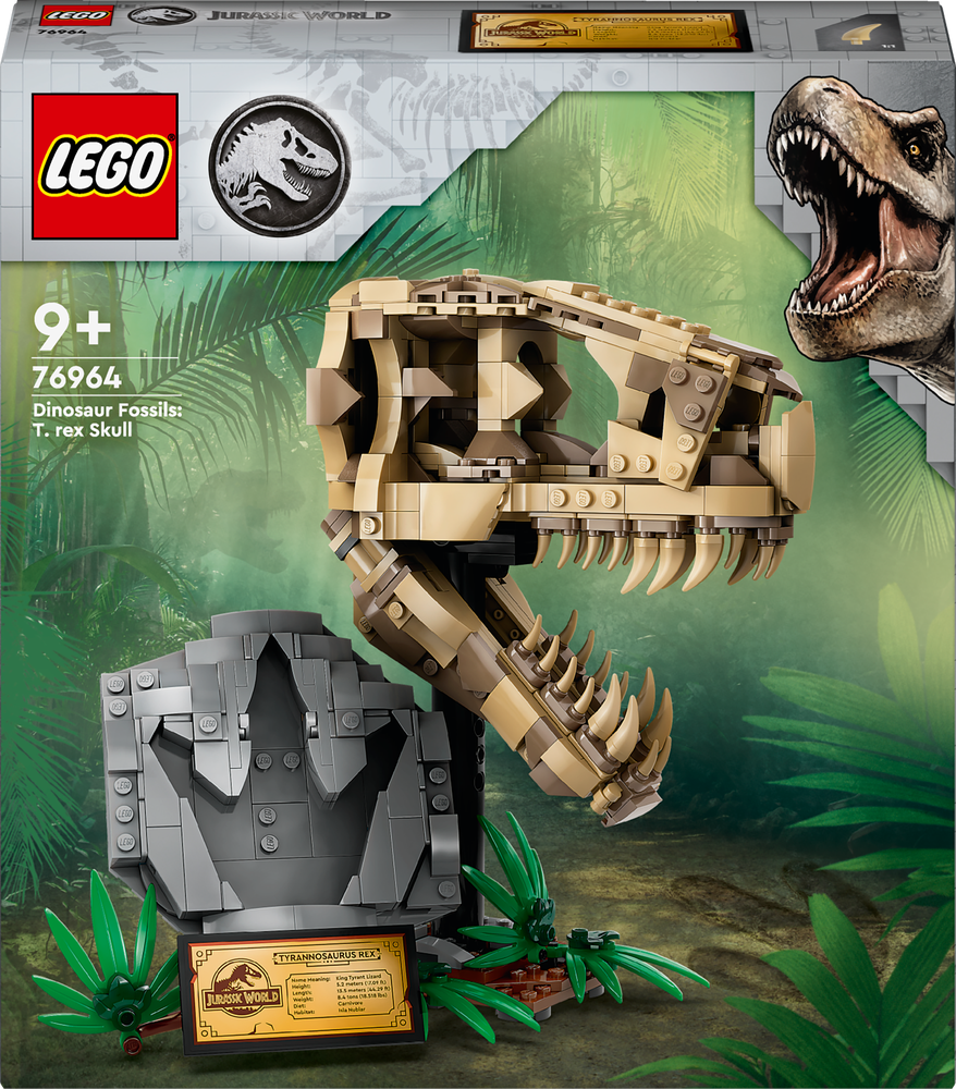 Stavebnice LEGO® Jurassic World (76964) Dinosauří fosilie: Lebka T-rexe je skvělý dárek pro děti od 9 let, které zbožňují dinosaury, a pro malé paleontology. Středobodem této zcela první stavebnice z řady Jurassic World určené na výstavku je lebkas otevírací čelistí a nechybí ani podstavec s informační plaketou, ukrytý dílek „jantaru“ na zadní straně modelu a „zkamenělá“ stopa.