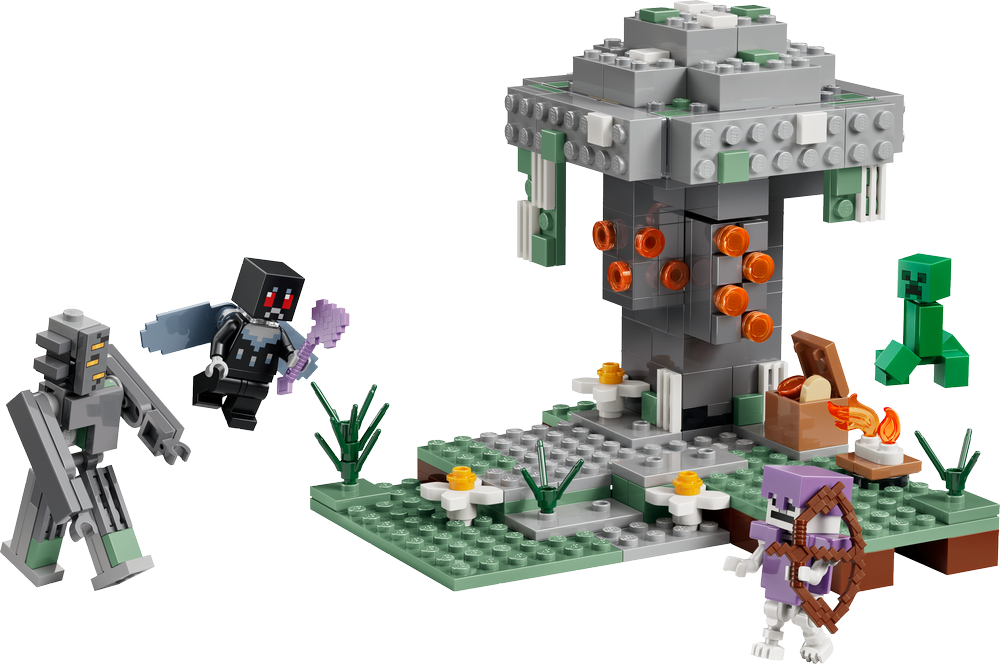 - 4 POSTAVY LEGO® MINECRAFT® – Creaking z kostek se postaví hrdinnému okřídlenému Mothmanovi a Creeper™ a Kostlivec se potulují po bledé zahradě