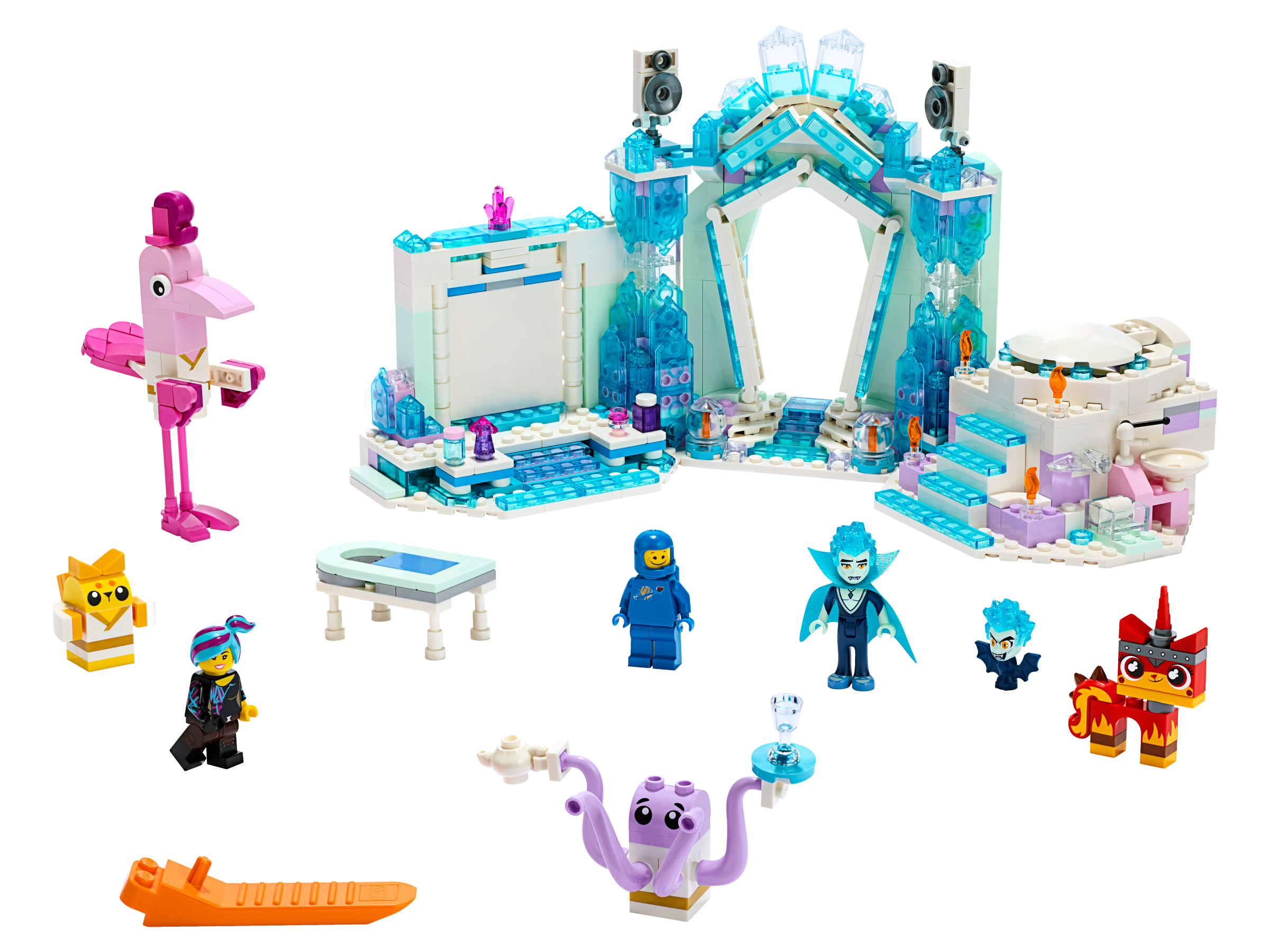 Připoj se k postavám z filmu LEGO® PŘÍBĚH 2, mezi něž patří kosmonaut Benny, Vybledlá Hustěnka a UniKitty jako KlídeKitty ve Třpytkolesklých lázních s touto barevnou sadou! Užij si masáž od chobotnice Osmy. Zrelaxuj se ve vířivce s Klídekitty. Prohlédni si nový účes Vybledlé Hustěnky – líbí se všem kromě ní! Ale pozor – v systému Systar není vše takové, jak to vypadá. Vířivka má padací dveře. A když se Baltazar promění ve vampíra, uděláš lépe, když utečeš!