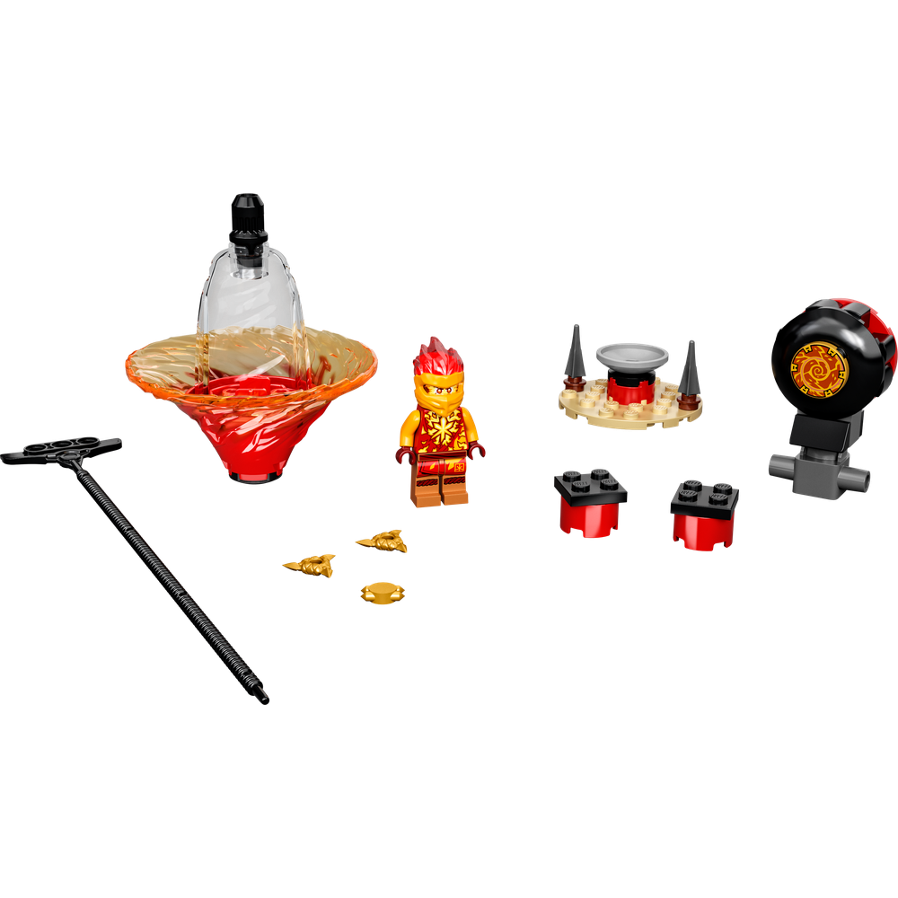 - Akční nindžovský model – Děti mohou Kaie posadit do spinneru, zatáhnout za šňůru a sledovat, jak se roztočí. Pak mohou vyzkoušet jeho rovnováhu tím, že přidají pár kostek ke stávající věži, aby byla zase o něco vyšší
