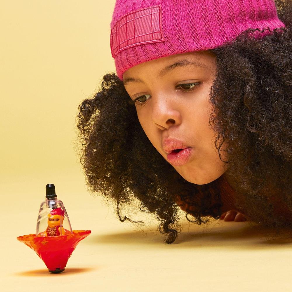 Děti mohou Kaie umístit do spinneru, zatáhnout za šňůru a sledovat, jak se roztočí na plochém povrchu nebo vysoko na balanční věži. Minifigurka Kaies exkluzivním, dosud nevídaným živlovým vzhledem je novinkou na březen 2022.Zábavný digitální zážitek pro stavitele LEGO®