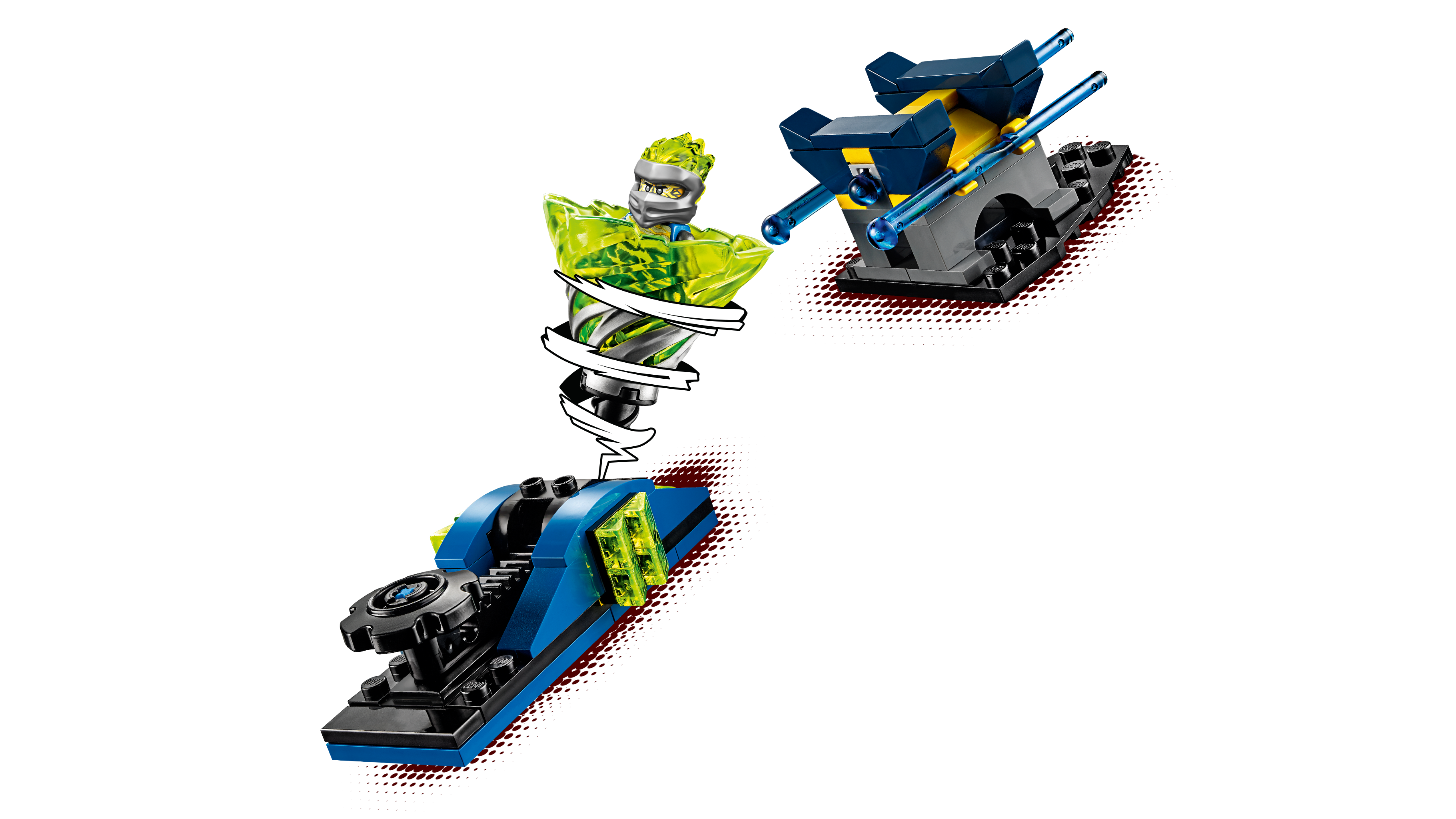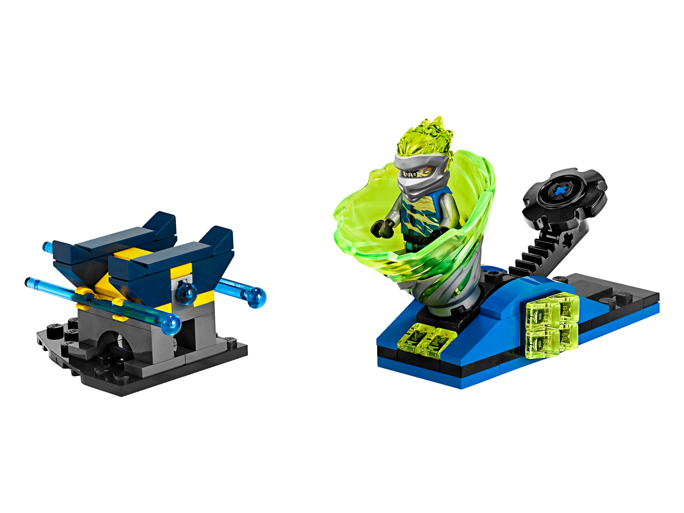 - Tento LEGO® NINJAGO® nindža spinner obsahuje Jayův tornádo spinner, který je novinkou pro červen 2019, včetně odpalovače z kostek, a k tomu navíc sestavitelný podstavec vystřelovače se 3 pružinovými raketami.