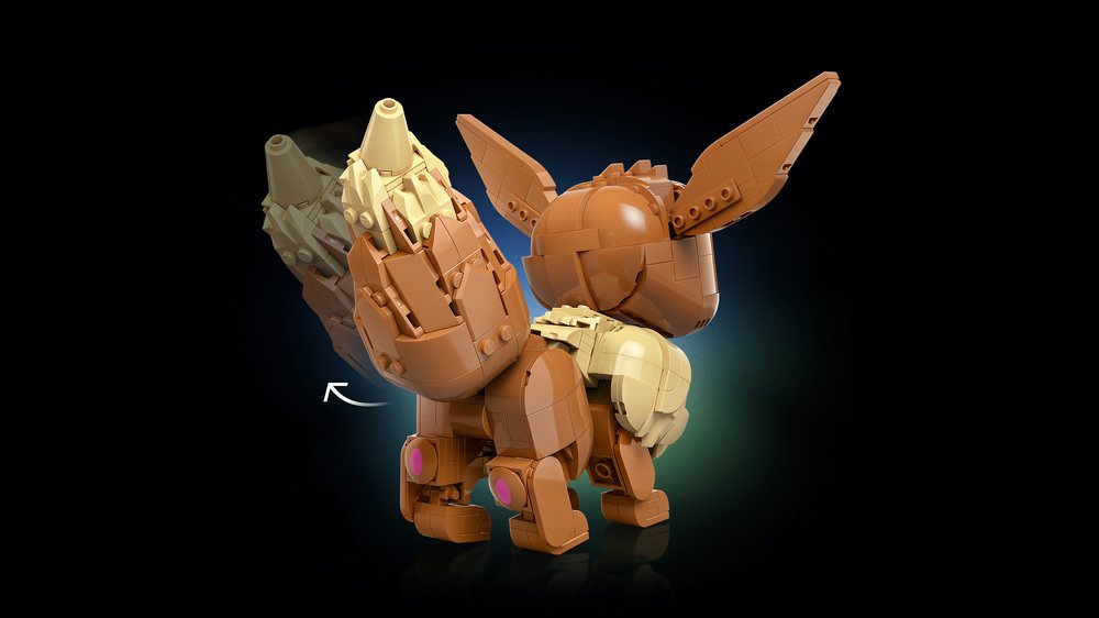 - ROZKOŠNÁ POLOHOVATELNÁ FIGURKA LEGO® – Roztomilý obličej, uši, tlapky a nohy Eeveeho jsou pohyblivé a ocas je kloubový, takže tuto figurku Pokémona normálního typu lze napolohovat do ikonických póz