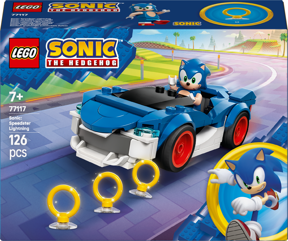 - ZÁVODNÍ HRAČKA SONIC THE HEDGEHOG™ – Děti a gameři od 7 let si užijí napínavou závodní hru se stavebnicí Sonic: Speedster Lightning (77117), která obsahuje i minifigurku Sonica