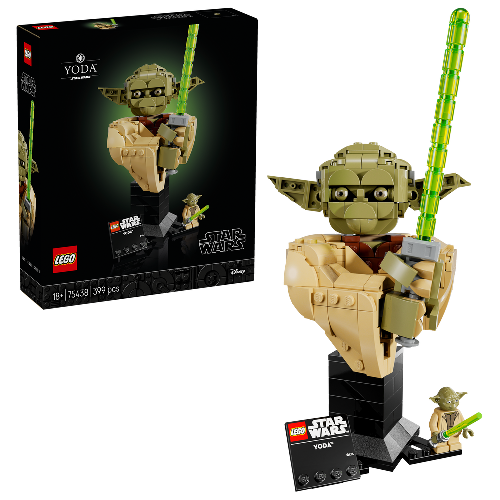 Sestavení této velmi detailní stavebnice LEGO® Star Wars™ Busta Yody (75438) si vyžaduje dávku koncentrace, to dá rozum! Dejte si načas a soustřeďte se na ztvárnění charakteristických rysů mistra Yody tak, jak ho znáte z filmu Star Wars: Klony útočí. Sestavte mu světelný meč, který může držet v ruce, a vystavte své dílo na sestavitelném stojánku se jmenovkou. Yodovu hlavu a uši nastavte tak, aby vyjadřovaly různé výrazy, a bustu otáčejte na podstavci, abyste si ji mohli prohlížet ze všech úhlů. Pak stojan mírně přestavte a udělejte místo pro minifigurku Yody LEGO se světelným mečem.