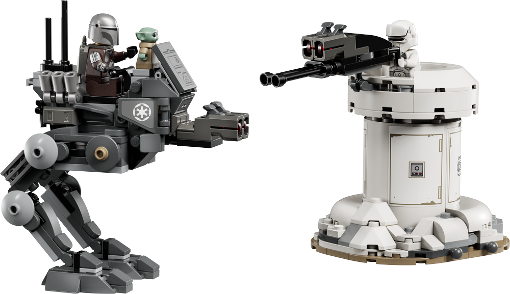 - AT-RT PŘIPRAVENÝ DO BOJE – Nastavte nohy AT-RT, zamiřte a vystřelte z dvojitého vystřelovače a odstraňte kostku palubní desky, aby se Grogu mohl svézt s Mandalorianem.