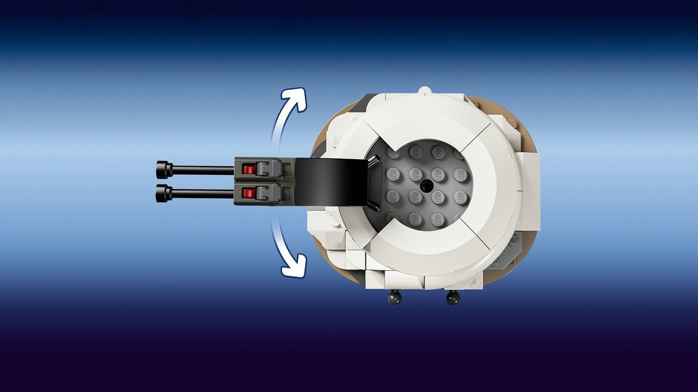- OBRANNÁ VĚŽ – Umístěte minifigurku LEGO® za dvojitý vystřelovač, otočte věž a namiřte ji libovolným směrem, a otevřete základnu, abyste odhalili držák na zbraně a úložný prostor.