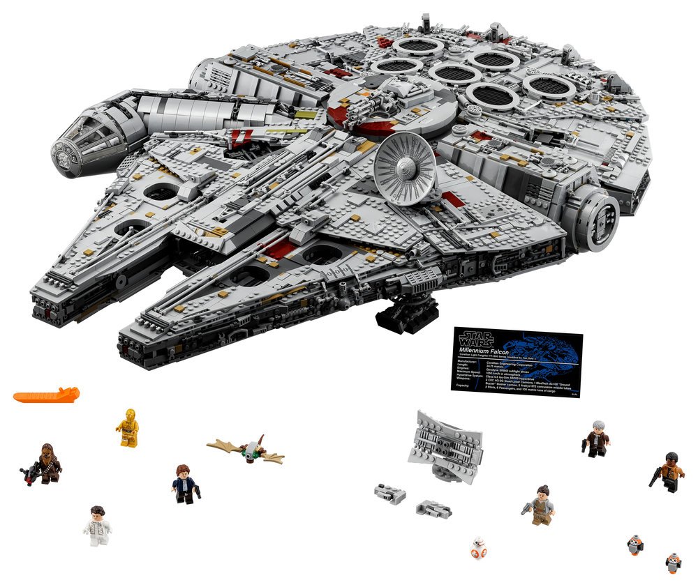 Vítej v největším a nejdetailnějším modelu lodi Millennium Falcon od LEGO® Star Wars, který jsme kdy vytvořili - ve skutečnosti je s 7500 dílky jedním z největších LEGO modelů všech dob! Toto úžasné ztělesnění nezapomenutelné Corellianské stíhačky Hana Sola od stavebnice LEGO obsahuje všechny detaily, které si jen fanoušci Star Wars, bez ohledu na věk, můžou přát, včetně důmyslných vnějších detailů, čtyřhlavňových laserových kanónů v horní a dolní části, přistávacích nohou, spouštěcí rampy a kokpitu pro 4 minifigurky s odnímatelným krytem. Sejmi jednotlivé panely trupu a odhal tak detailně propracovaný hlavní nákladový prostor, zadní úložný prostor a střeleckou stanici. Tento úžasný model také obsahuje vyměnitelný satelitní talíř i celou posádku, takže si můžeš vybrat, jestli si chceš přehrávat klasické LEGO Star Wars dobrodružství s Hanem, Leiou, Chewbaccou a C-3PO nebo chceš vstoupit do světa Epizod VII a VIII a spolu se starším Hanem, Rey, Finnem a BB-8!