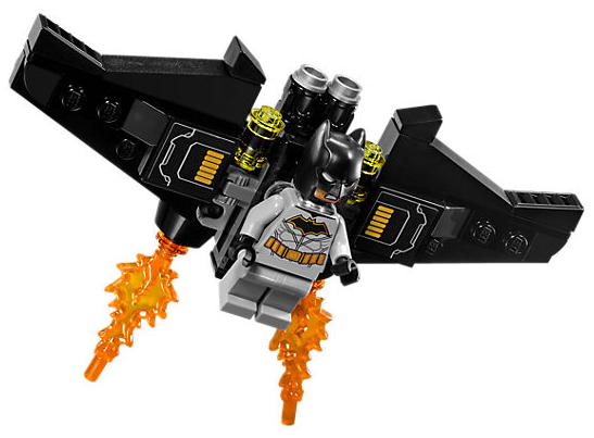 - Bat-kluzák má místo pro minifigurku Batmana, 2 vystřelovače a 2 průsvitné oranžové dílky ve tvaru plamenů.